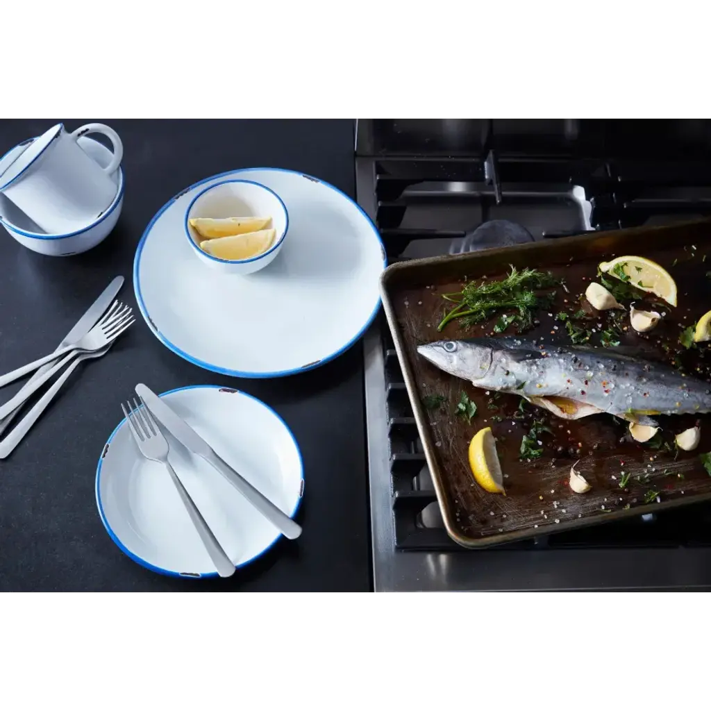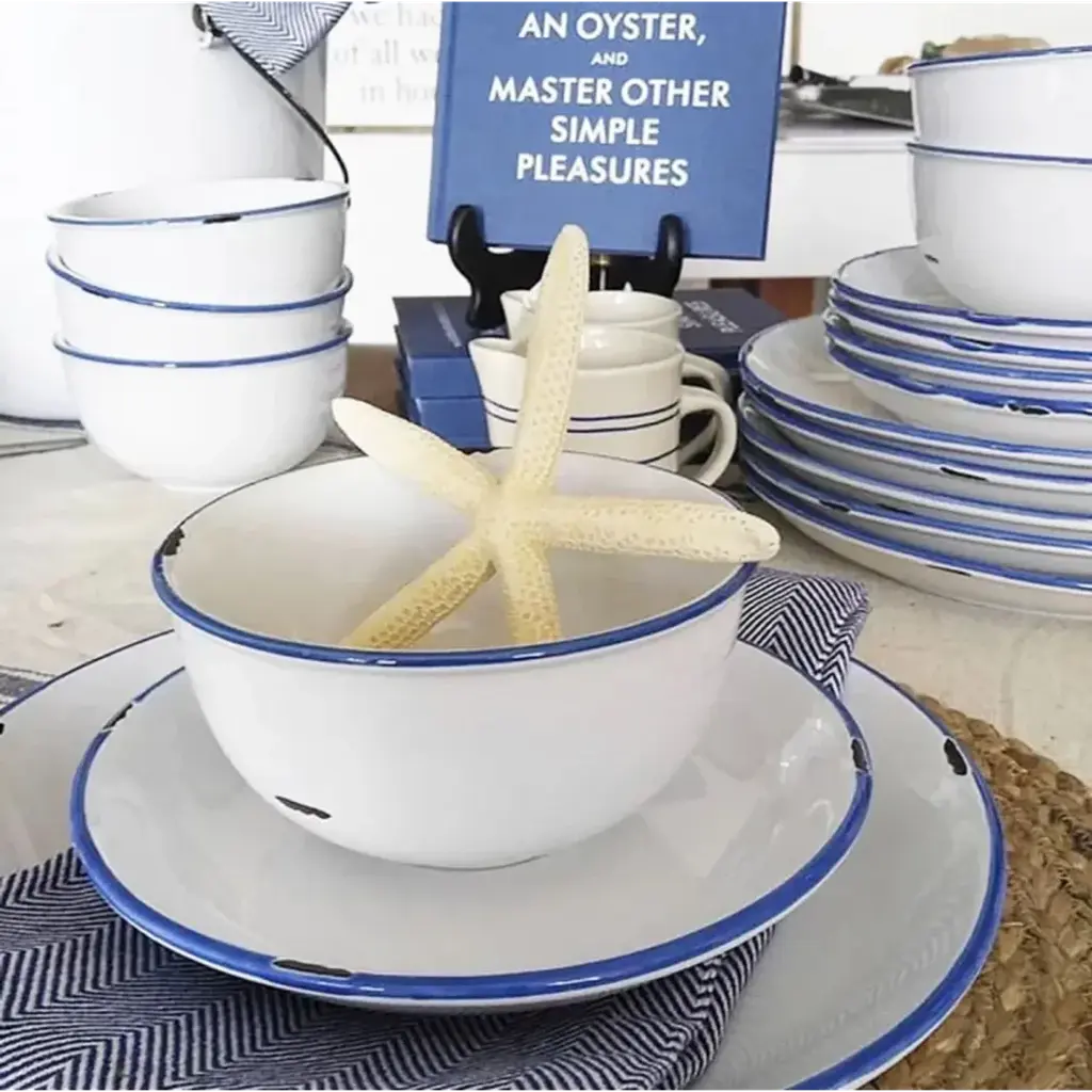 The canvas Tinware Collection are stoneware mimicking vintage metal cookware. The earthy stoneware mingles warm cream with soft contrasting glazed rim and realistic distressed edges in each individual piece. Our collection is heavy duty and functional for the modern home. Great for cookout gatherings or a nostalgic evening with your family.