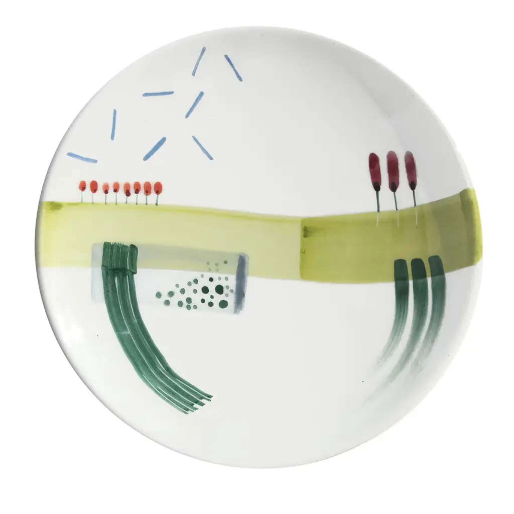 This dinner set is one of the designs of the Divertissement collection. The drawing is a joyful pattern of vibrant and lively colors that wants to please the eye. Each piece is unique and entirely handmade painted, the design may slightly vary. Please, contact the Concierge for further information and options.
