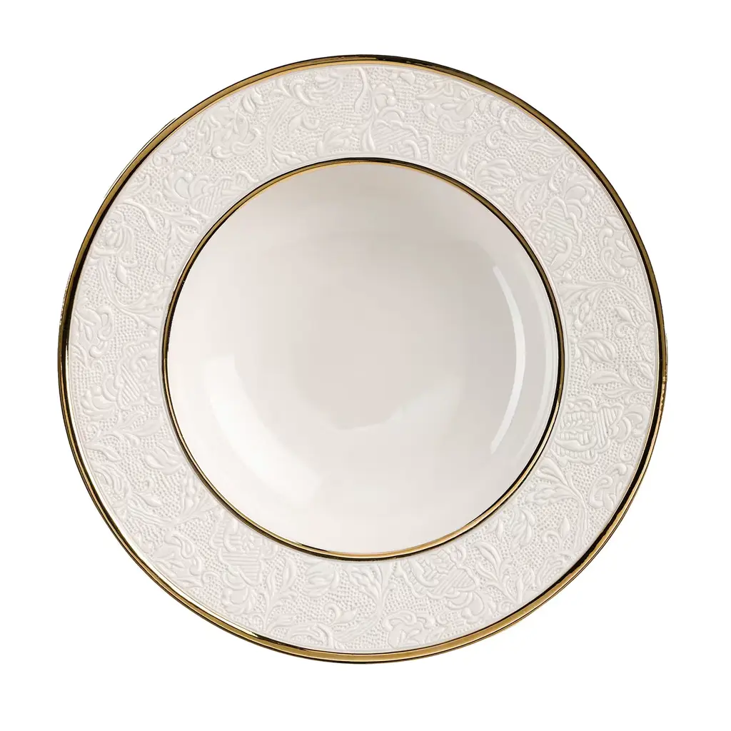 Raynaud's Tolede Gold dinnerware is hand-crafted by French artisans from Limoges porcelain. Available by special order only; please allow 12-16 weeks for delivery. Raynaud was established in 1849 and is the only survivor of 11 porcelain factories existing in Limoges, France. After years of research, Raynaud discovered techniques to create infinite combinations of fade-resistant decorations that is still used by porcelain makers. Boasting a client list of numerous presidents to Princess Diana, Raynaud has been the synonym of quality, known and recognized on every continent.