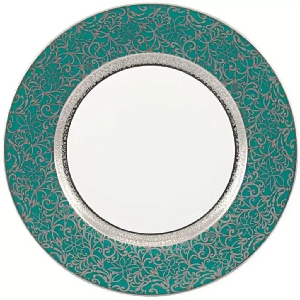 Raynaud's Tolede Red dinnerware with platinum incrustation is hand-crafted by French artisans from Limoges porcelain. Available by special order only; please allow 12-16 weeks for delivery. Raynaud was established in 1849 and is the only survivor of 11 porcelain factories existing in Limoges, France. After years of research, Raynaud discovered techniques to create infinite combinations of fade-resistant decorations that is still used by porcelain makers. Boasting a client list of numerous presidents to Princess Diana, Raynaud has been the synonym of quality, known and recognized on every continent.