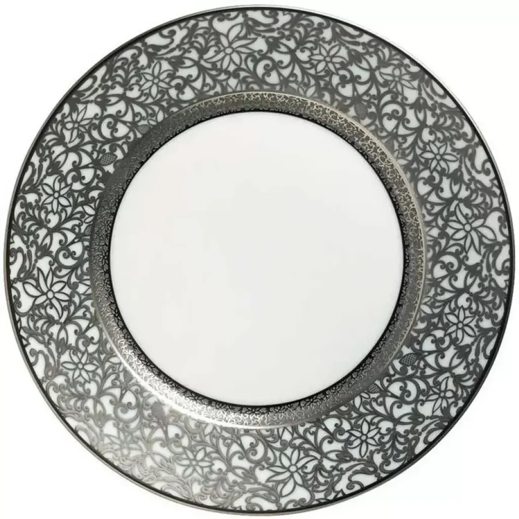 Tolède Platinum White Flat Cake Serving Plate Diam 12.2 In