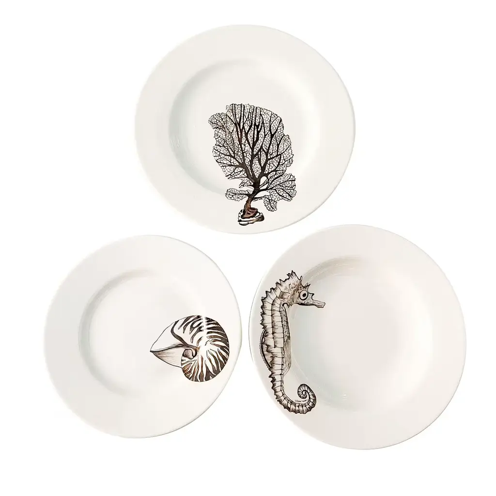 Handmade in the UK by British artist Tom Rooth, this ceramic platter features a detailed black-and-white sea turtle illustration. Crafted in small batches, each piece is individually glazed and fired, making every platter slightly unique.The platter is food, microwave, and dishwasher safe, making it both functional and decorative. Use it for serving, display, or as a statement piece in coastal or contemporary interiors.•Artist: Tom Rooth•Medium: Glazed ceramic•Technique: Illustrated transfer•Made in: United Kingdom•Care: Food, microwave & dishwasher safe•Dimensions: 14 .1/8" Diameter x 2 3/8" Height•Condition: NewIdeal for collectors, beach homes, or modern naturalist decor.