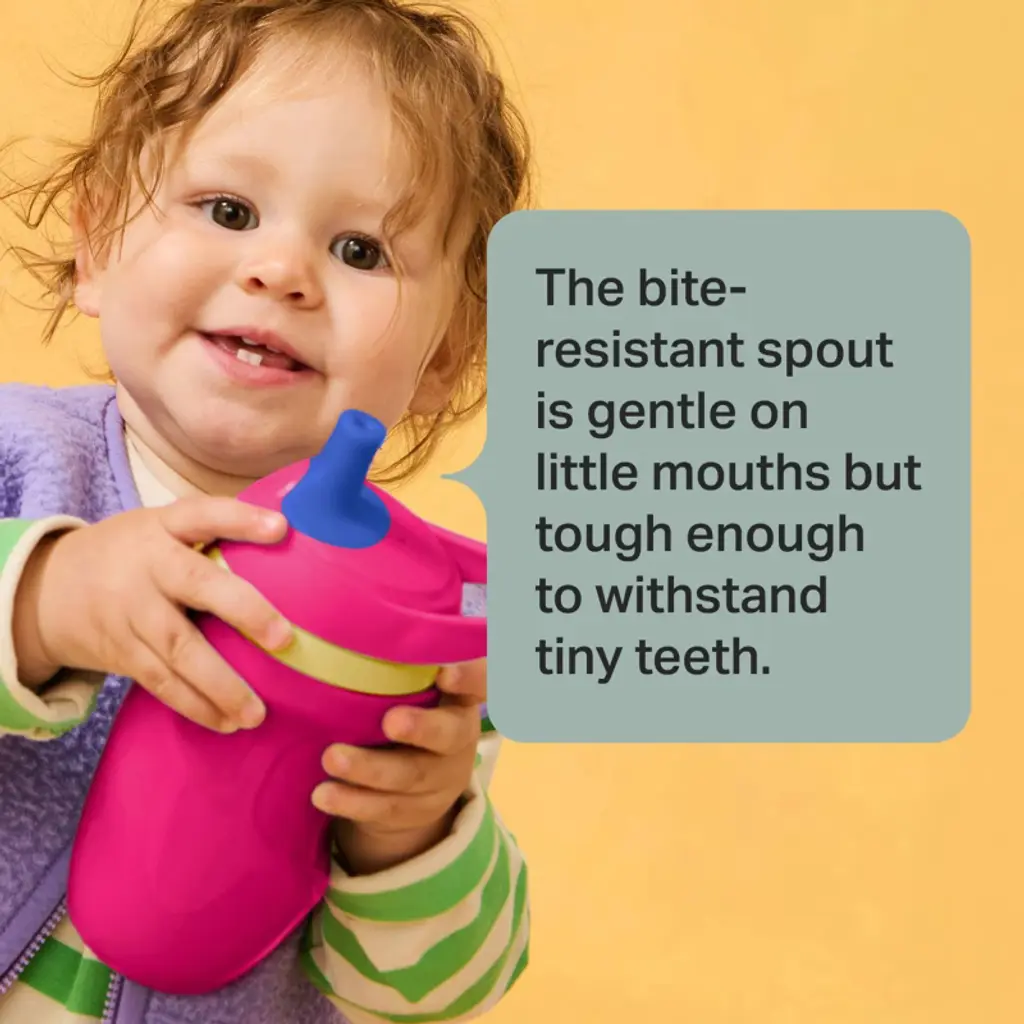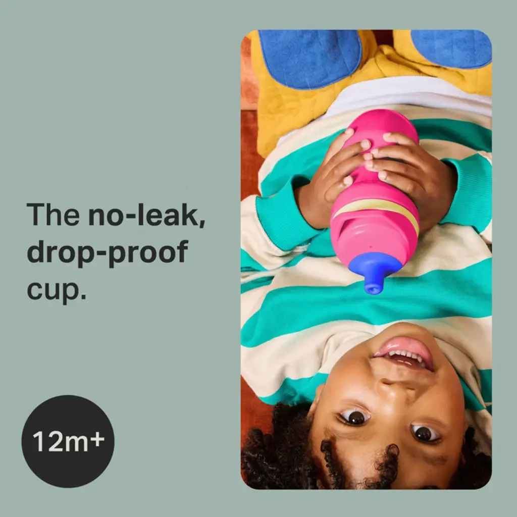 The no-leak, drop-proof toddler cup that’s comfortable to carry. This colorful water bottle is insulated to help keep their drinks cooler, and has a durable, bite-resistant spout for stress-free sips from 12 months. • Specially engineered two-piece valve stops spills, and can be removed for free-flow drinking • Durable spout that's gentle on little mouths (but also bite-resistant) • Insulated base to help keep drinks colder* • Suitable for babies aged 12m+ • Dishwasher safe and BPA free *Compared to non-insulated cups