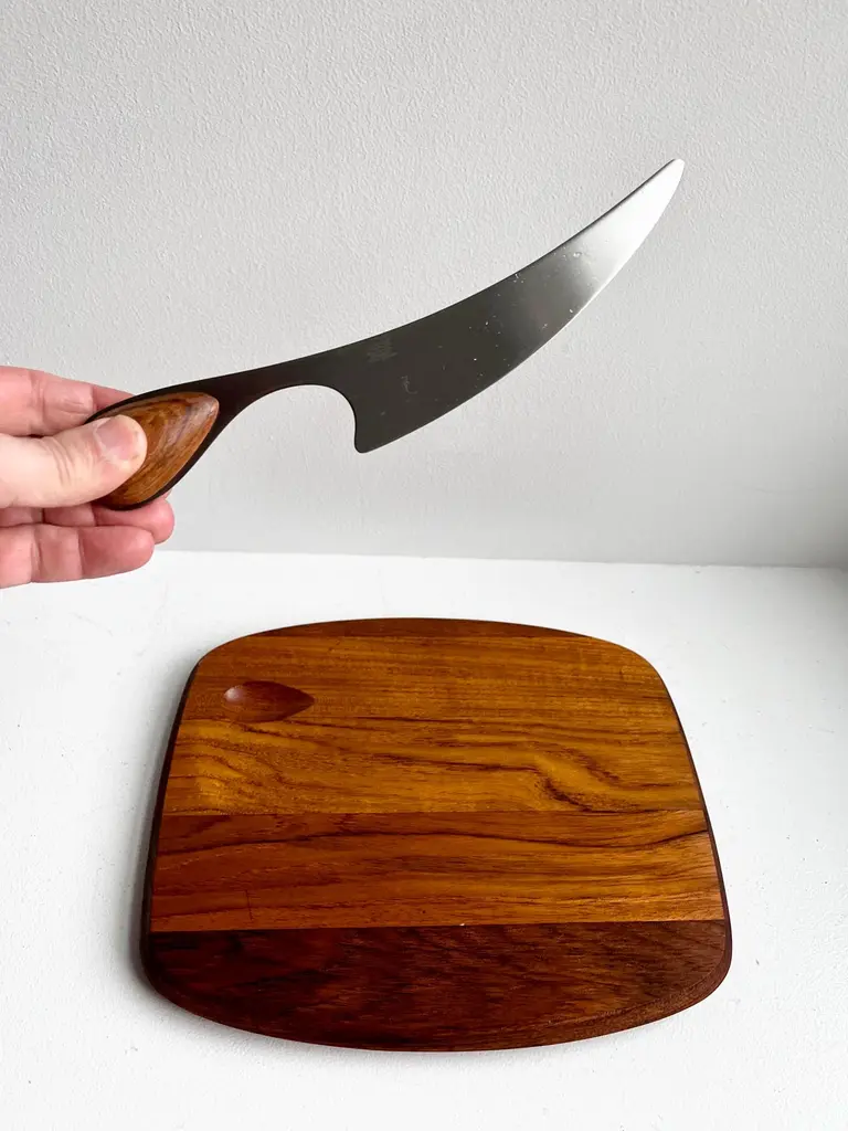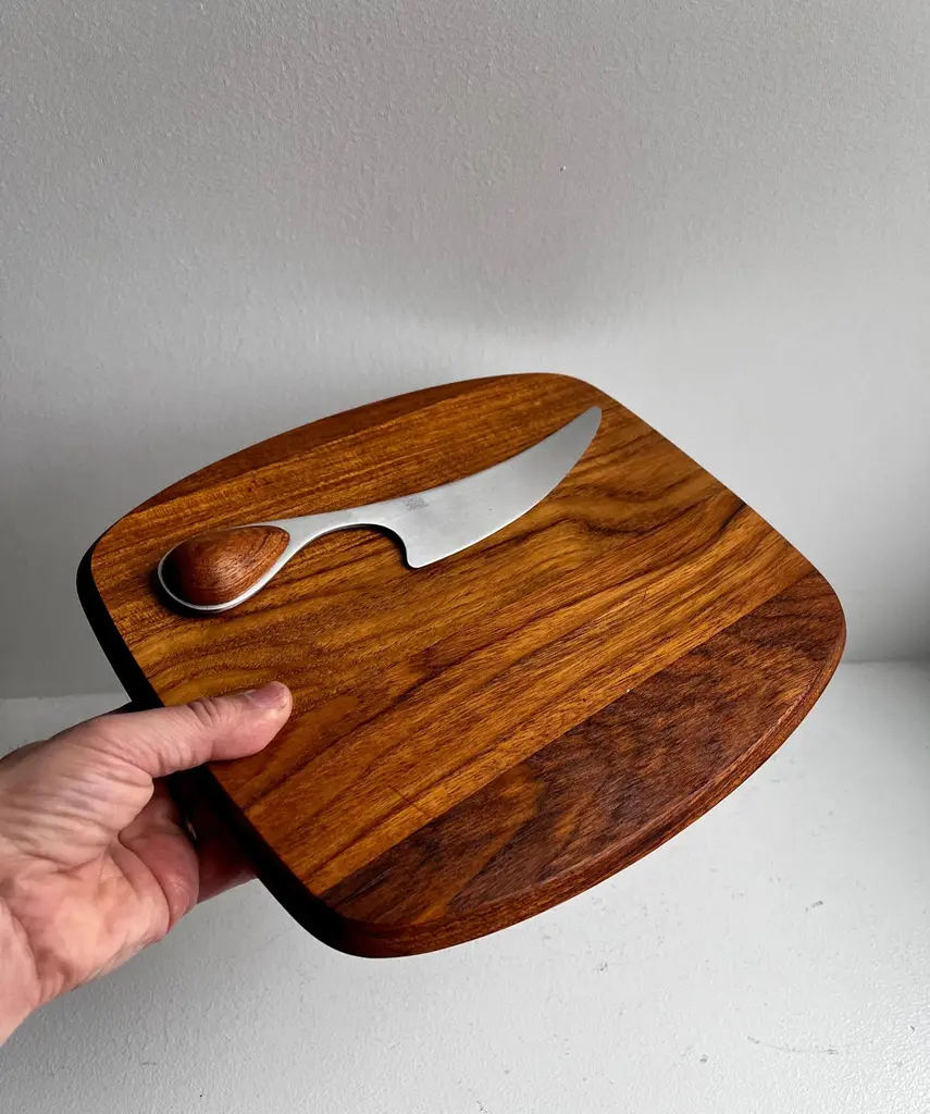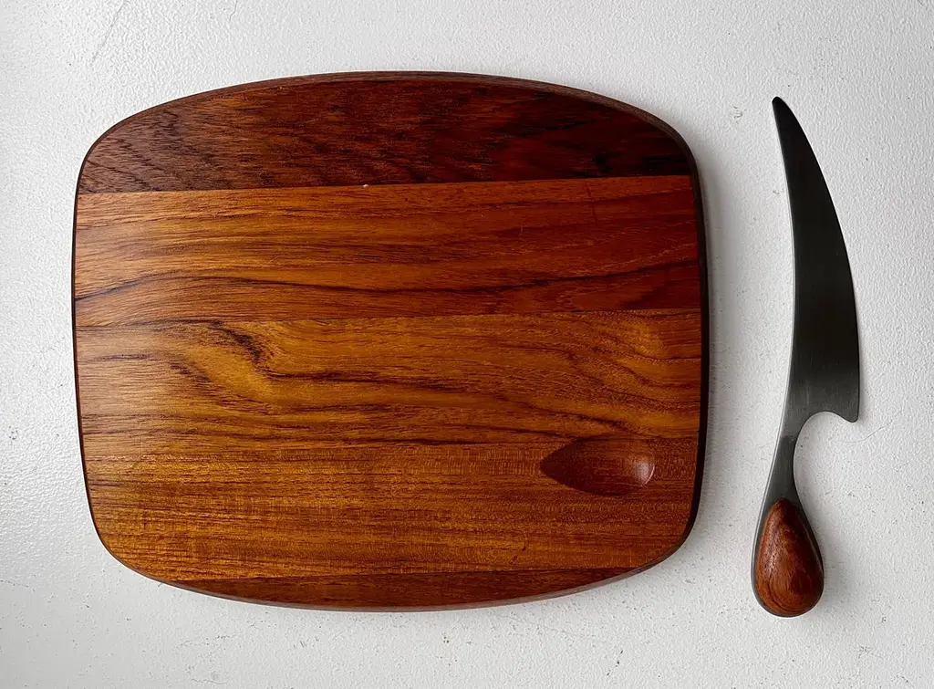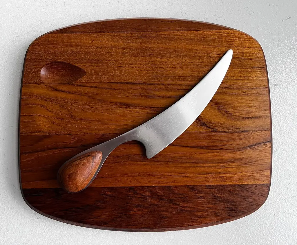 "Toruń" Teak Wood Cutting Board With Knife By J. H. Quistgaard, Denmark