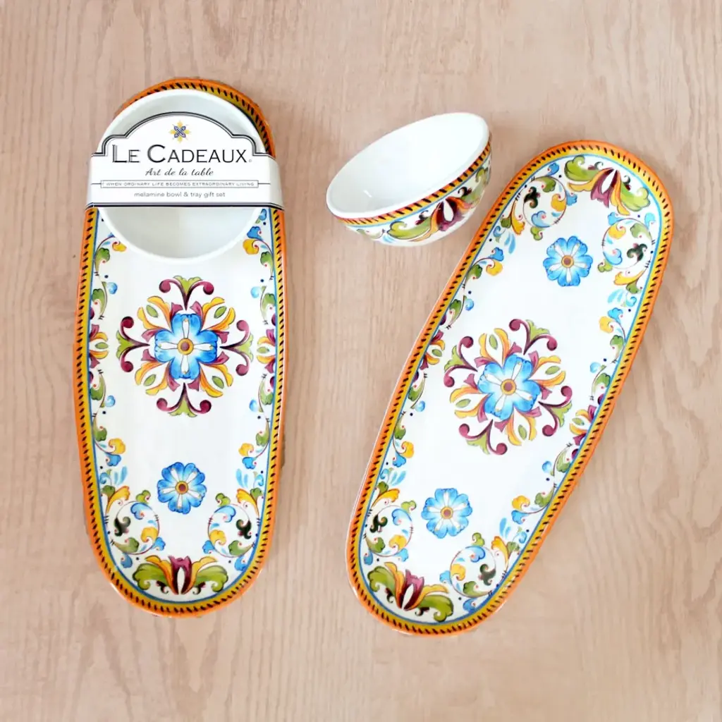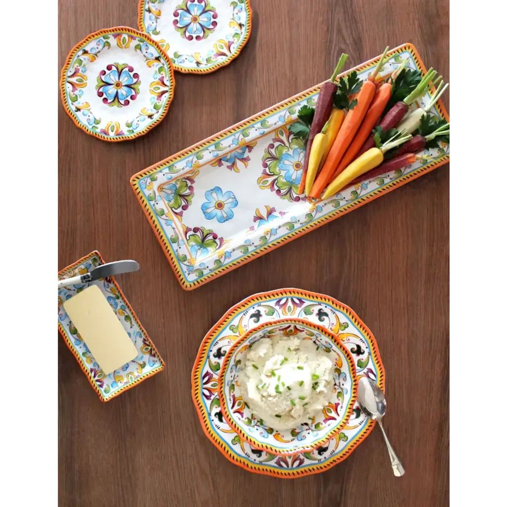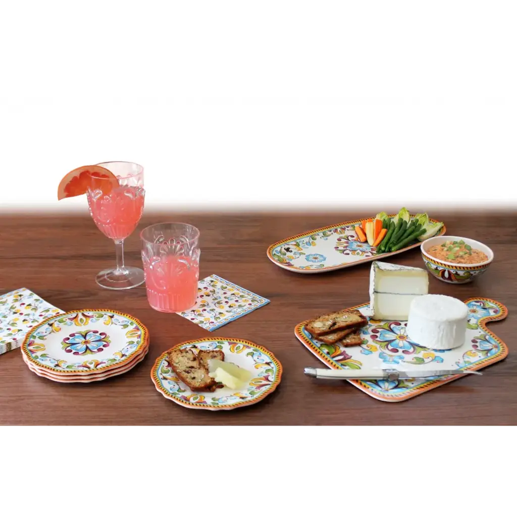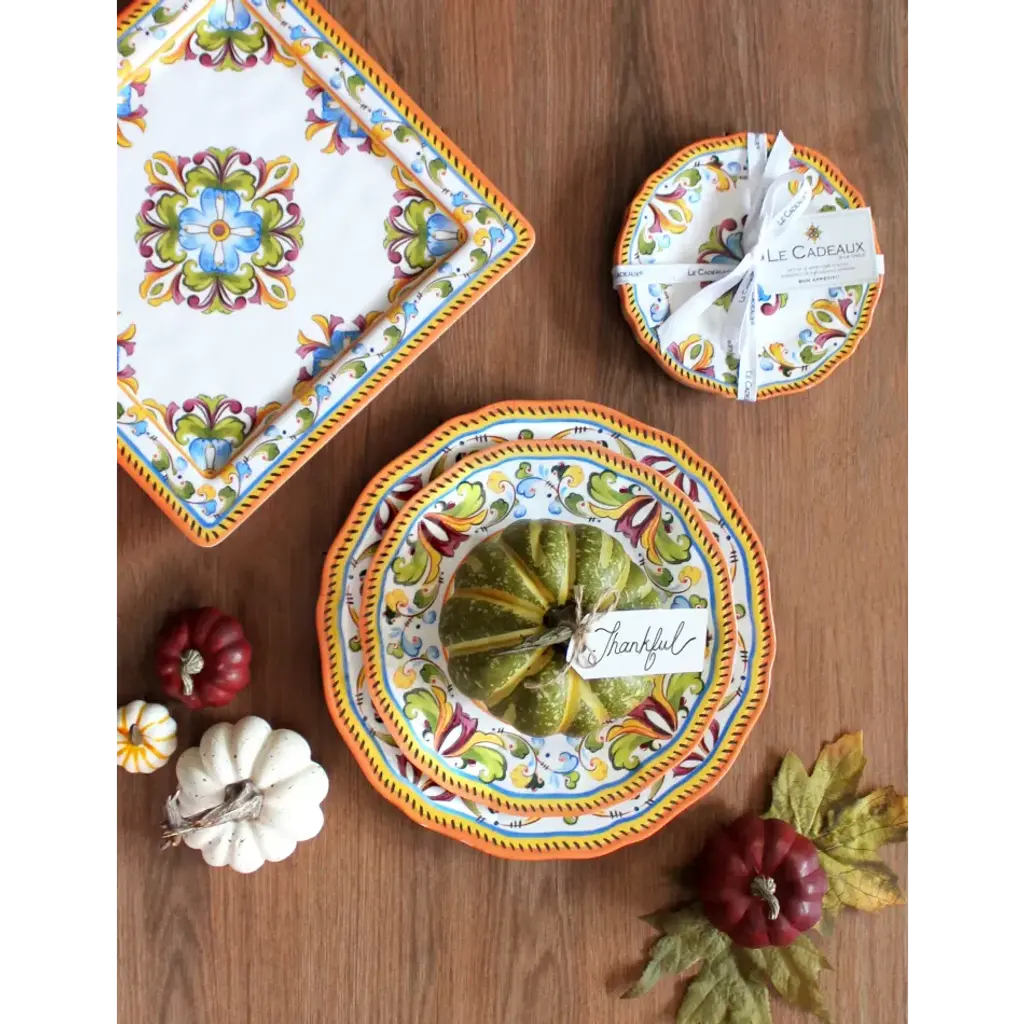 Beautifully crafted with textured surface treatments and exceptional weights, Le Cadeaux's signature melamine dinnerware is often mistaken for real ceramic Italian pottery. Ideal for outdoor and large group entertaining, Le Cadeaux's exclusive collections are inspired by the French and Italian countrysides, designed in Los Angeles, and made in Asia.