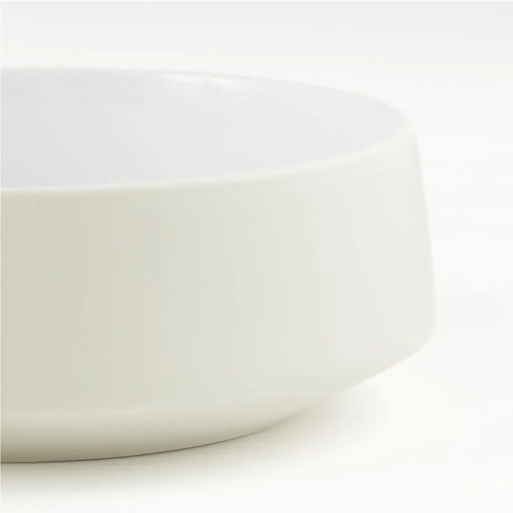 Inspired by our bestselling Tour glassware collection, our Tour dinnerware and serving pieces boast similarly angled silhouettes to set the table with modern edge. These straight-sided dinner plates, salad plates, cereal bowls and mugs slant in toward the base for softly sculptural profiles. Hand-glazed matte white on the exterior and glossy within, the fine porcelain 16-piece dinnerware set belies its dishwasher-safe durability. Complete the look with our exclusive Tour wine and bar glasses, serveware and flatware.