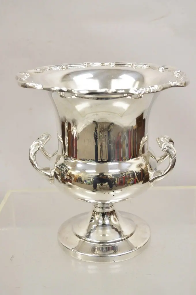Vintage Towle Silver Plated Champagne Chiller Ice Bucket Trophy Cup engraved "N.J.P.H.A 1988 Champion". Circa late 20th CenturyMeasurements: 10.5" H x 10" W x 10" D.Listing is for 1 bucket. Second bucket available in separate listing