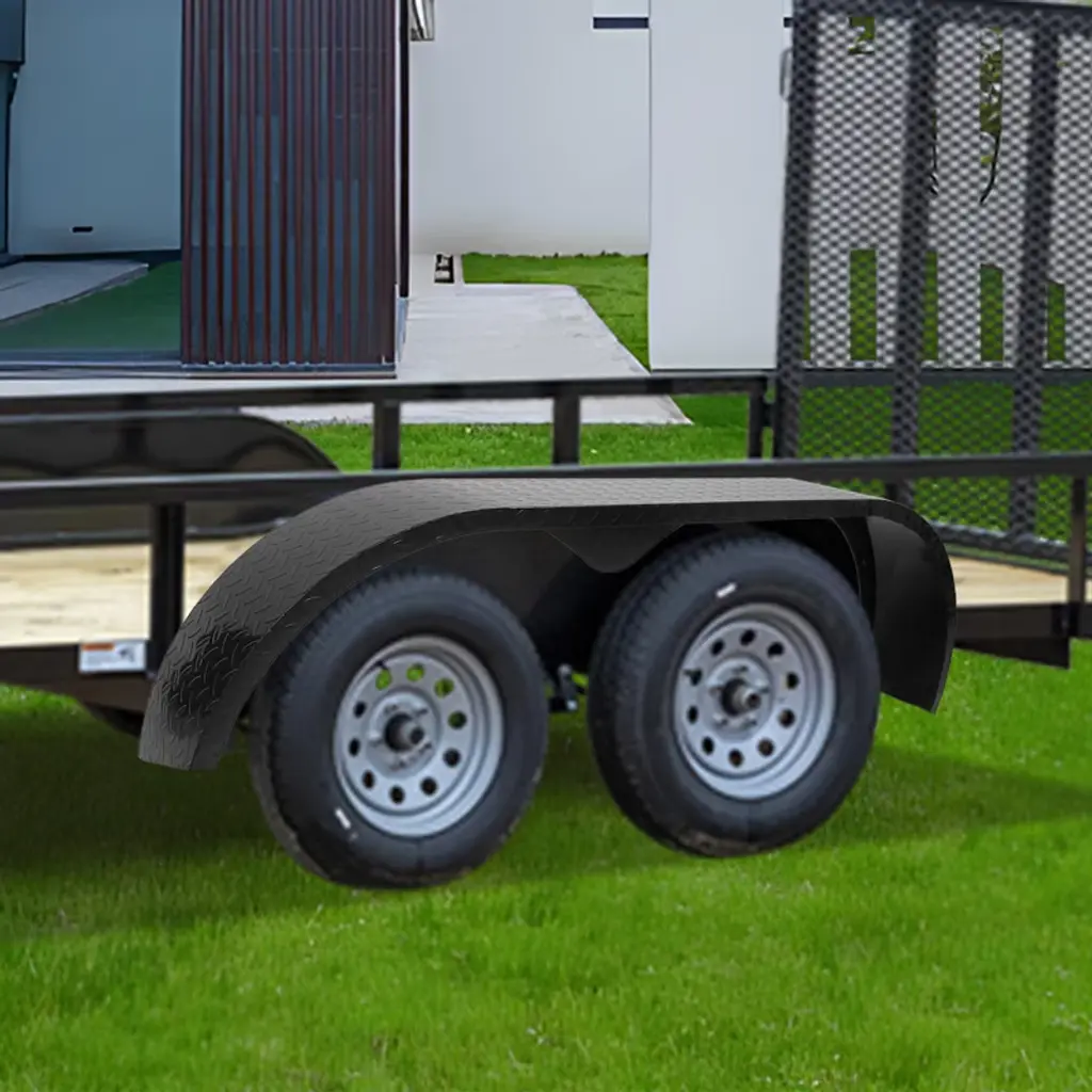 1.14 Gauge Steel Construction: Industrial-Strength DurabilityCrafted from thick 14 gauge steel¡ªone of the most robust materials for trailer accessories¡ªthese fenders deliver exceptional strength that stands up to years of heavy use. Unlike thinner 16 or 18 gauge steel alternatives that bend or dent easily, 14 gauge steel resists impact from flying rocks, loose gravel, and even accidental bumps from shifting cargo (e.g., lumber in a utility trailer or landscaping stones in a landscape trailer). The steel¡¯s rigid structure also maintains its shape in extreme conditions, from high-speed highway vibrations to rough off-road terrain, ensuring the fenders don¡¯t warp or crack over time. This heavy-duty build means you won¡¯t need to replace the fenders frequently, making them a cost-effective long-term solution for your tandem axle trailer. 2.13"-15" Tire Compatibility: Perfect Fit for Multiple Trailer TypesEngineered to fit tires ranging from 13 to 15 inches¡ªone of the most common size ranges for light-to-medium-duty tandem axle trailers¡ªthese fenders eliminate the hassle of hunting for size-specific parts. They align seamlessly with:Car haulers: Providing full coverage for tires supporting vehicles (e.g., sedans, small trucks) without rubbing against the trailer¡¯s side rails. Cargo trailers: Fitting snugly around tires to prevent debris from entering the trailer bed and damaging stored goods (e.g., boxes, furniture). Utility trailers: Adapting to tires on trailers used for hauling tools, equipment, or building materials. Landscape trailers: Matching the tires of trailers carrying mulch, soil, or lawnmowers, even when the trailer is loaded to capacity.The precise fit ensures no gaps between the fender and tire, maximizing protection while maintaining a clean, professional look.3.Heavy-Duty Debris Shielding: Minimize Tire & Trailer DamageThese fenders act as a tough barrier between your trailer¡¯s tires and the road¡¯s most damaging hazards. When towing, they block flying rocks, gravel, and road salt from hitting the tire sidewalls¡ªpreventing punctures, cuts, and premature rubber degradation. They also shield the trailer¡¯s undercarriage and frame from mud, dirt, and debris buildup, which can cause rust or corrosion over time. For example, when hauling a car hauler on a gravel road, the fenders stop stones from scratching the vehicle being towed or damaging the trailer¡¯s wiring. By reducing direct contact with these hazards, the fenders lower your trailer¡¯s maintenance needs¡ªfewer tire replacements, less undercarriage cleaning, and minimal frame repairs. 4.All-Weather Resilience: Built to Withstand Harsh ConditionsDesigned for year-round use, these steel fenders hold up against even the harshest weather and road environments. In rainy or snowy conditions, the steel resists water damage and rust (when paired with regular basic maintenance, like occasional cleaning), unlike flimsy plastic fenders that crack in freezing temperatures. During hot summer months, the steel doesn¡¯t warp or soften under intense sunlight, ensuring consistent coverage and protection. They also handle humidity (common in coastal areas) and road salt (used in winter to melt ice) without corroding quickly, making them suitable for trailers used in diverse climates¡ªfrom wet coastal regions to dry inland areas. This all-weather design means your fenders stay functional and reliable, no matter the season. 5.Safer Towing Experience: Stable Performance for Peace of MindBy protecting your trailer¡¯s tires and undercarriage, these fenders directly contribute to safer, smoother towing. Undamaged tires maintain better traction on the road, reducing the risk of blowouts or loss of control¡ªespecially at high speeds or on wet surfaces. The fenders also prevent debris from getting trapped between the tandem axle tires (a common cause of uneven tire wear or trailer sway), ensuring the trailer tracks straight behind your tow vehicle. For anyone towing valuable cargo (e.g., a classic car on a car hauler or expensive tools in a utility trailer), this added safety layer means less worry about accidents or damage during transit. Whether you¡¯re towing short distances for a landscaping job or long distances for a camping trip, these fenders help keep your journey safe and stress-free.