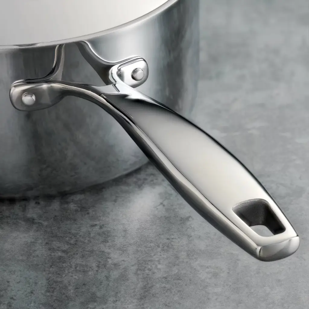 Whether filling your kitchen with hearty aromas of your own secret sauce or a whipping up some mac-and-cheese, Tramontina's 1.5 Qt Tri-Ply Clad Stainless Steel Covered Sauce Pan is your durable go-to. You'll love its ergonomically designed, cast stainless steel handle riveted for extra support, as well as its three-layer construction that allows for heating from all sides. Made of premium 18/10 stainless steel, dishwasher-safe, and oven-safe, the 1.5 Qt stainless steel sauce pan is an essential tool in home and commerical kitchens for baking, steaming vegetables, and, yes, just plain boiling water!