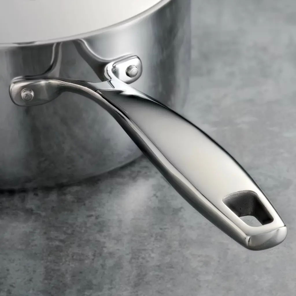 Tramontina's 4 Qt Tri-Ply Clad Stainless Steel Covered Sauce Pan is the ideal option for cooks preparing soups, stews or sauces for an intimate guest list. Sturdy, but not heavy, and durable enough for busy kitchens, the 4 Qt sauce pan's tri-ply clad construction means the pan heats evenly, not just the bottom. Ergonomically designed, cast stainless steel handles are riveted for additional support, making the pan easy to maneuver. It's also dishwasher-safe, oven-safe, and compatible with all cooktops. As part of the Tramontina's Gourmet Tri-Ply Clad cookware collection, this one is a versatile must-have for any kitchen!