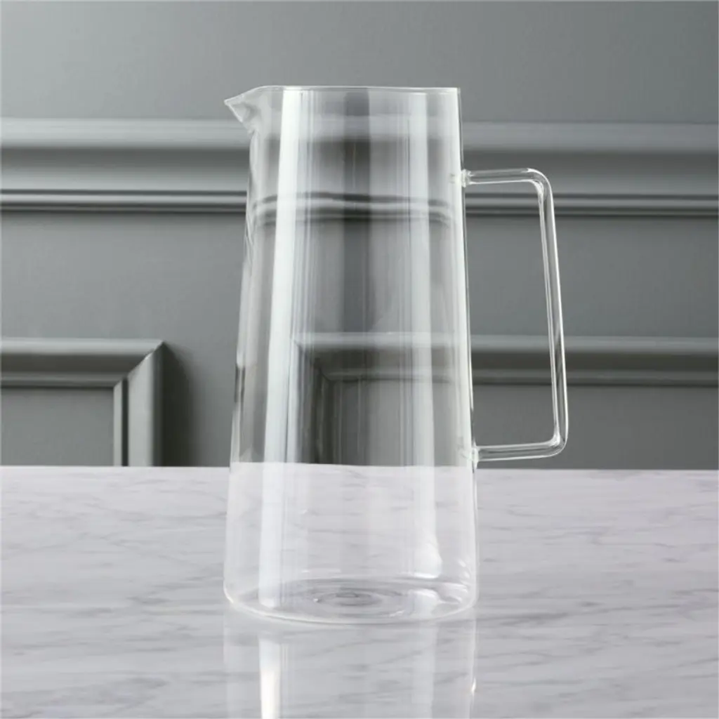 Handmade of ultra-durable beaker glass, this statuesque pitcher pours a party's worth of cocktails, mocktails, iced tea or H2O. Slightly tapered shape is defined by elegant proportions and a modern square handle.
