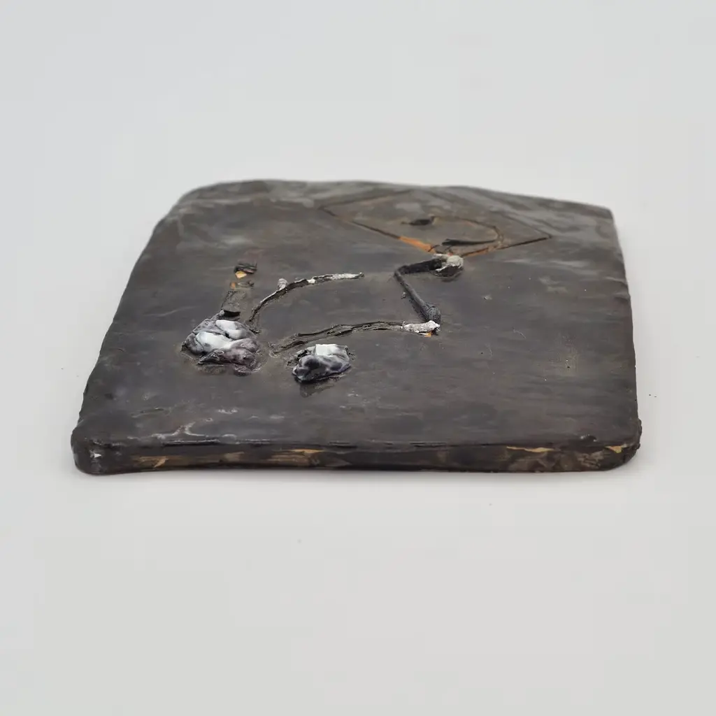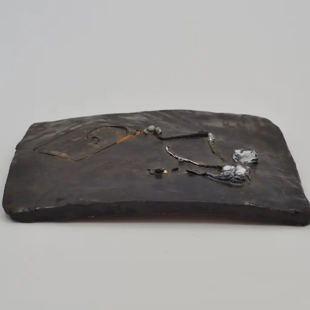 The singular art of Maurizia Carantani meets design in this splendid decorative plate that will elevate the look of a wall or tabletop of a modern home. Deftly handcrafted of terracotta, its visually captivating surface is enriched with glass and metallic materials blending with the black lacquer in a bold interplay of shapes and volumes.