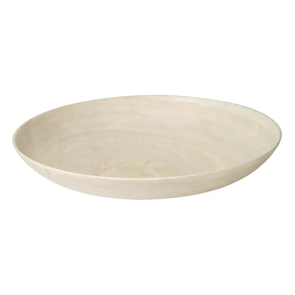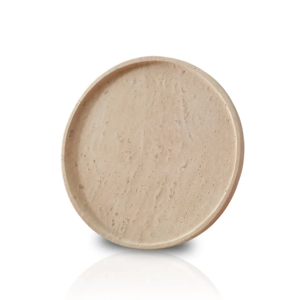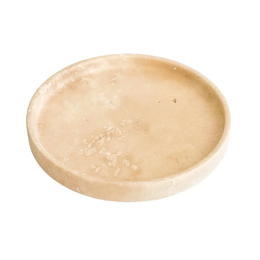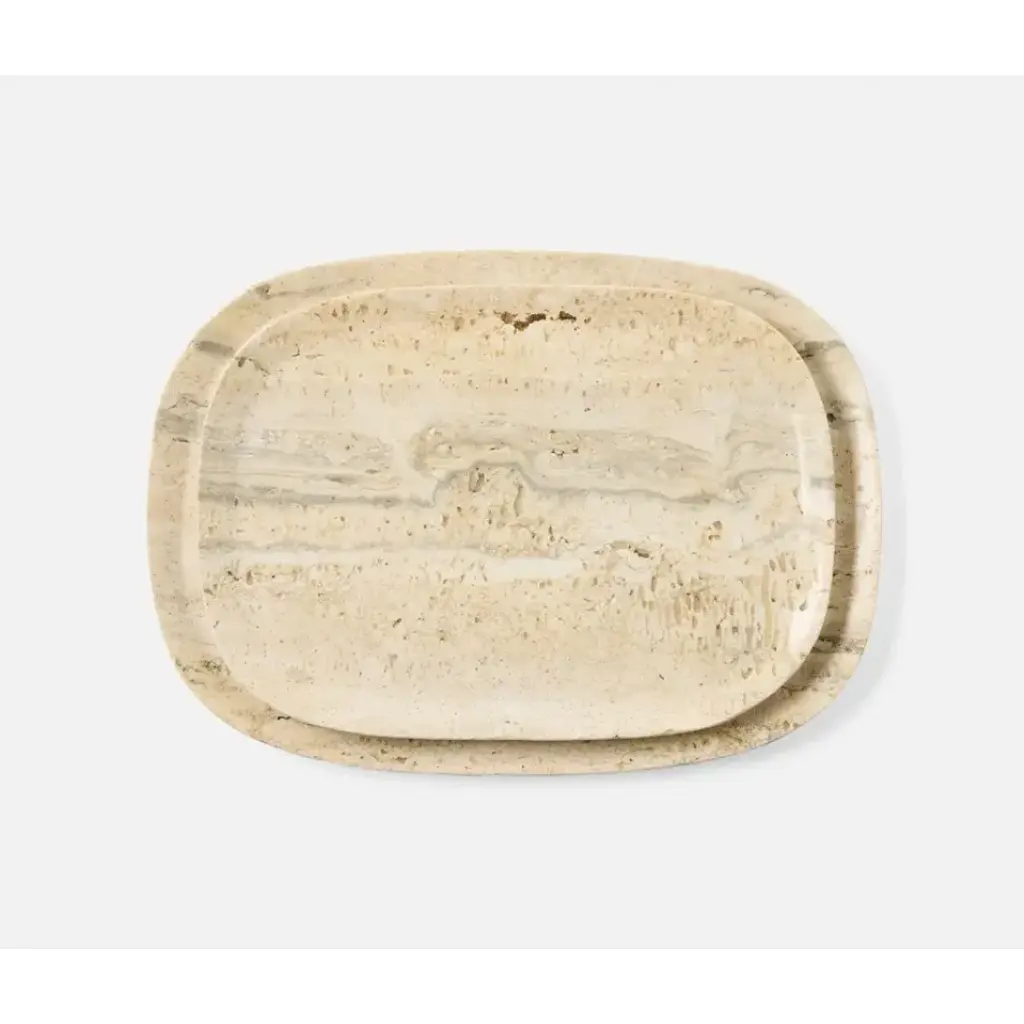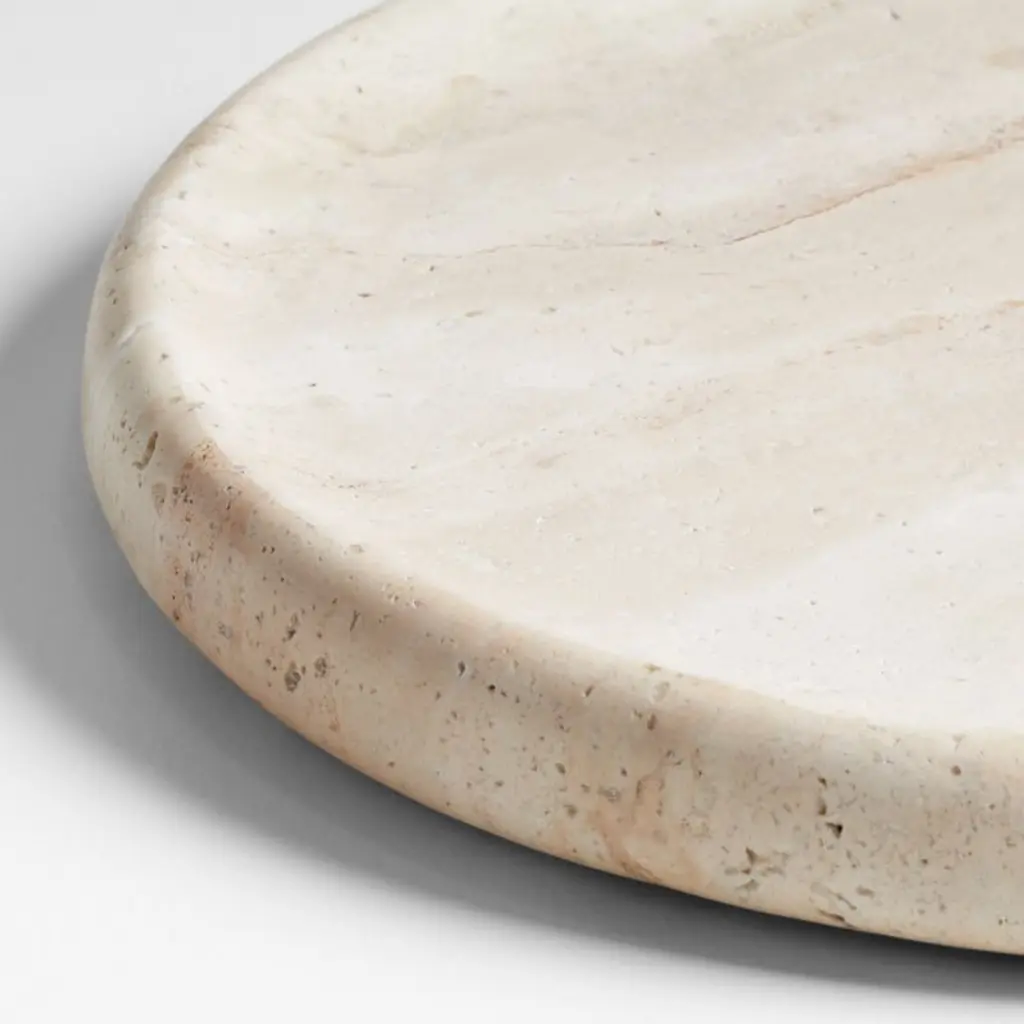 There's nothing like pure travertine to show off fresh fruit, charcuterie selections or home-cooked treats. We've styled this platter clean and modern with just a hint of a rounded rim to let the stone's natural earth tones and unique markings take center stage. A semi-matte finish adds to the serving plate's refined and elegant look.