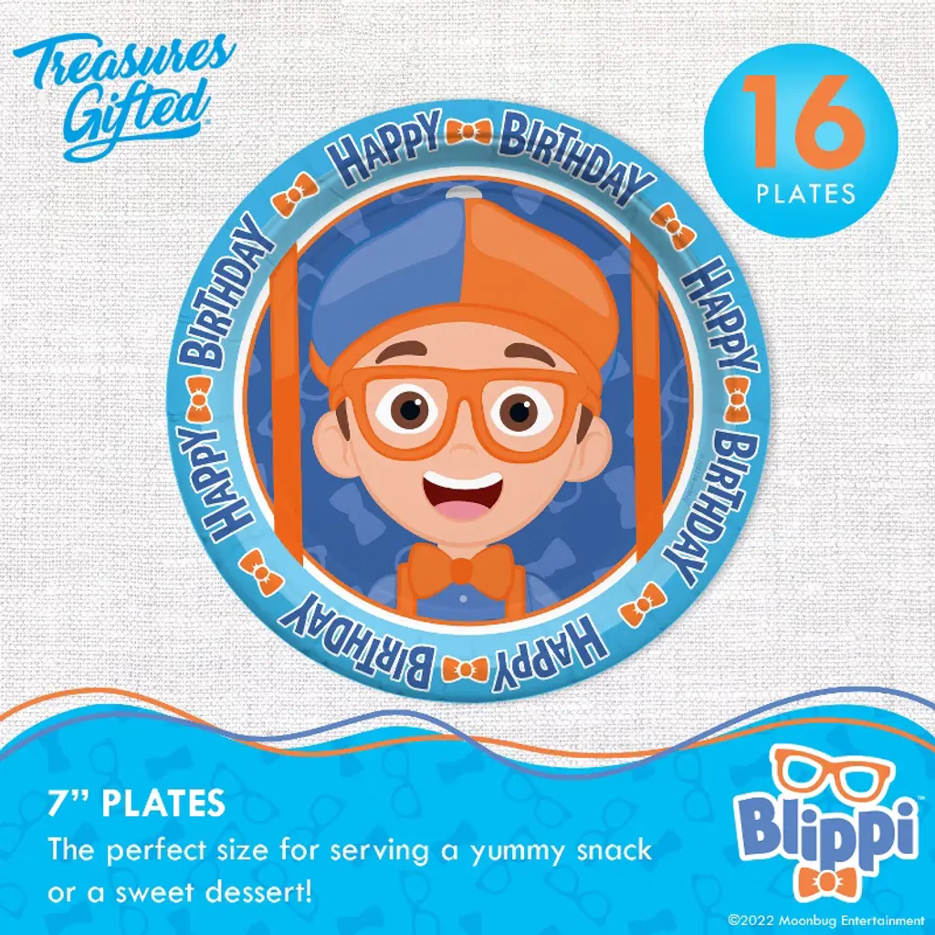 Treasures Gifted Blippi Plates 7In - Blippi Party Supplies - 16 Pack