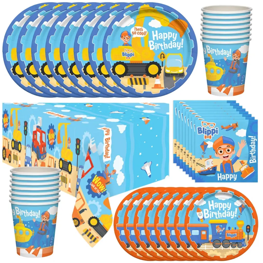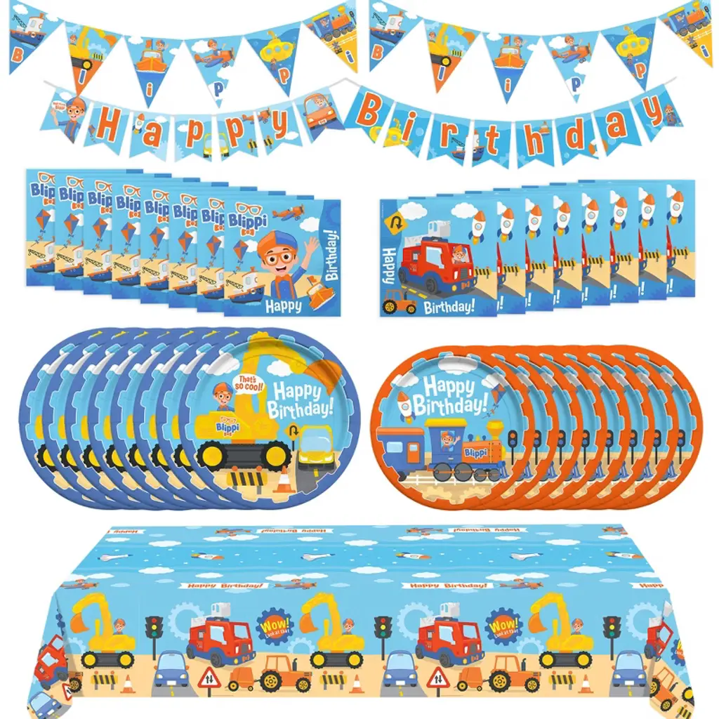 Get the party started with our Blippi birthday decorations! With its brightly colored design featuring your child's best friend Blippi and all of his favorite vehicles, our high-quality decorations are the perfect addition for creating a Blippi themed celebration. Made from high-quality paper, they are durable and long-lasting, ensuring a super easy clean up after all the fun. Check out our store for more authentic Blippi birthday party supplies, including backdrops, cake toppers, banners, and more!! These Blippi paper plate set features: (8) 9in dinner plates
