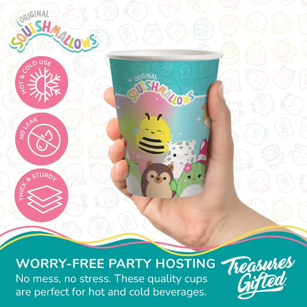Treasures Gifted Squishmallows Cups - 16oz Party Cups - Squishmallows Birthday Decorations - Disposable Paper Cups