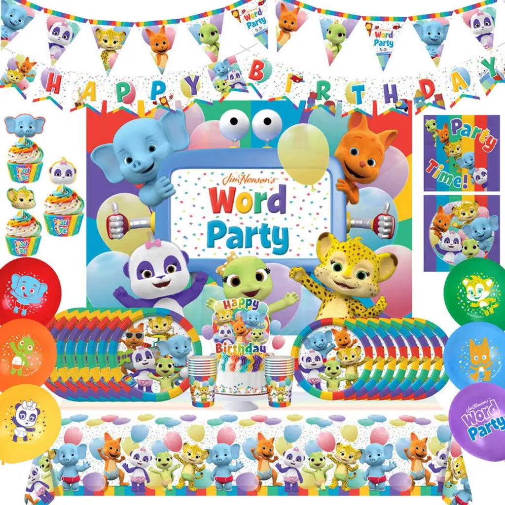 Join the lovable characters from Jim Henson's Word Party and celebrate with our delightful Word Party birthday decorations! Made with high-quality materials, it's durable and long-lasting, ensuring that it stands up all throughout your party. Designed for little learners, this cake topper set is a perfect addition to any Word Party birthday theme celebration. Featuring adorable characters and colorful designs, our Word Party birthday supplies create an engaging atmosphere. Check out our store for more authentic Word Party party decorations, including backdrops, balloons, banners, and more! This Word Party cake decorations kit includes: (1) 9in tall cake topper (2) food safe paper dowels for adjustable for your cake height (6) clear tape strips for securing the dowels to the cake topper (24) 4in tall double sided cupcake toppers (24) 1.7in tall cupcake wrappers
