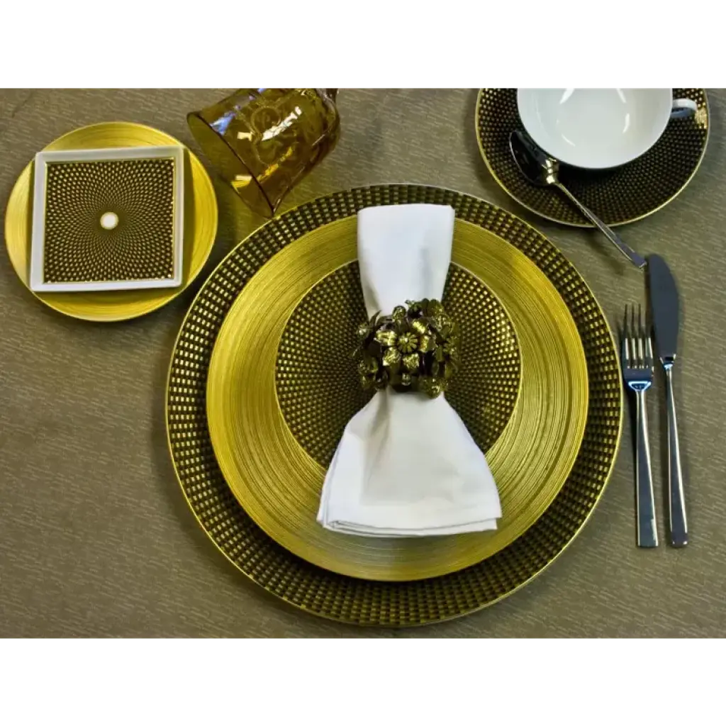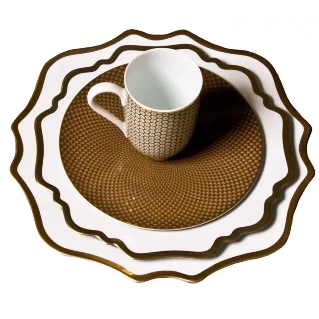From the house of Raynaud, the Tresor dinnerware collection features an ornate pattern of gold and a range of colors from earth tones to turquoise. Mix and match the colors for a truly unique look. Raynaud was established in 1849 and is the only survivor of 11 porcelain factories existing in Limoges, France. After years of research, Raynaud discovered techniques to create infinite combinations of fade-resistant decorations that is still used by porcelain makers. Boasting a client list of numerous presidents to Princess Diana, Raynaud has been the synonym of quality, known and recognized on every continent.