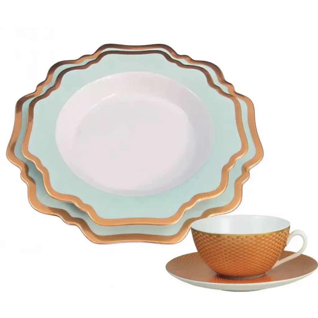 From the house of Raynaud, the Tresor dinnerware collection features an ornate pattern of gold and a range of colors from earth tones to turquoise. Mix and match the colors for a truly unique look. Raynaud was established in 1849 and is the only survivor of 11 porcelain factories existing in Limoges, France. After years of research, Raynaud discovered techniques to create infinite combinations of fade-resistant decorations that is still used by porcelain makers. Boasting a client list of numerous presidents to Princess Diana, Raynaud has been the synonym of quality, known and recognized on every continent.