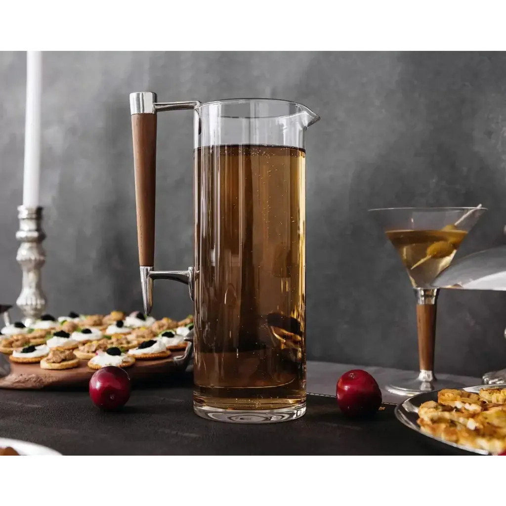 No libation goes better with mid-century modern design than the always simple, sophisticated martini. Shaken or stirred, serve them in Vagabond House's Tribeca Martini pitcher for all around applause. Tall and slender, a warm wood handle contrasts beautifully with cool, sleek pewter end caps and fittings. The well designed glass pitcher is a classic server for a classy drink. Sleek and slightly sexy, Vagabond House's Tribeca Collection embodies urbane sophistication and mid-century modern style. Vagabond House is a family-owned American company specializing in fine pewter tableware, servingware and giftware. Largely inspired by nature, their exclusive products are designed to be unique, functional heirlooms for those who seek to express tradition and style in both family and formal entertaining.