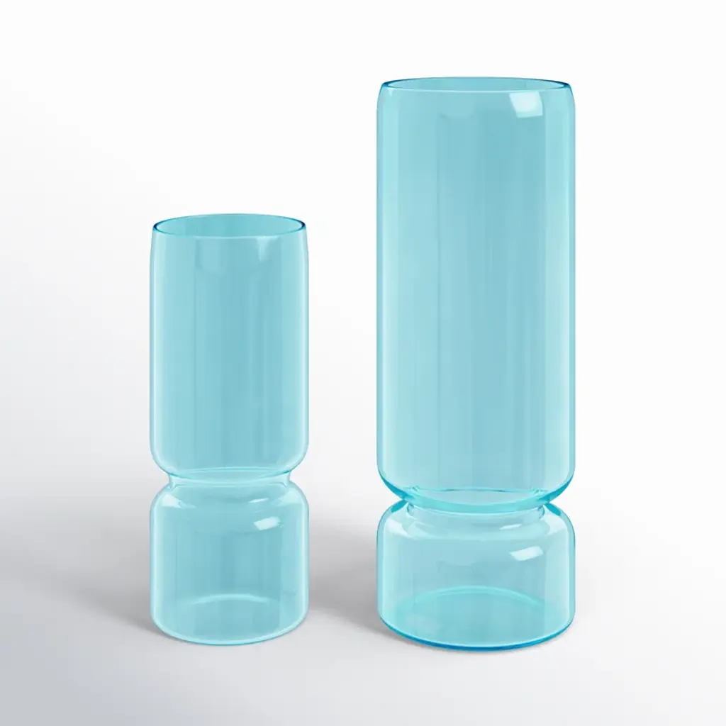 Devoid of any unnecessary ornament, this set from the Trio Collection draws inspiration from the formal elegance of the cylinder, enlivened by an evocative shade of midnight blue. It comprises two glasses (H 7x8x8 cm) and a pitcher (H 14.5x8x8 cm), their fore-front design allowing the glasses to enclose almost the whole pitcher's body leaving out only the central bulge designed to keep them in place.