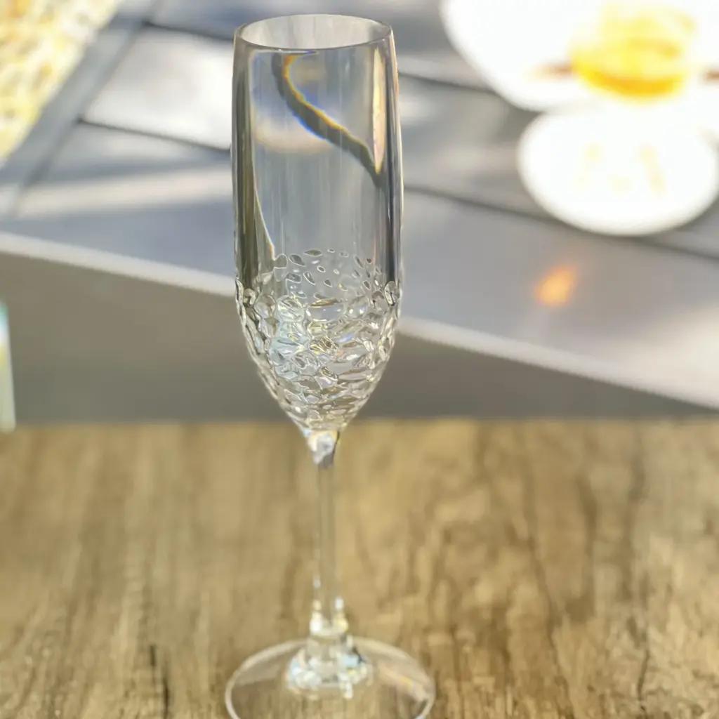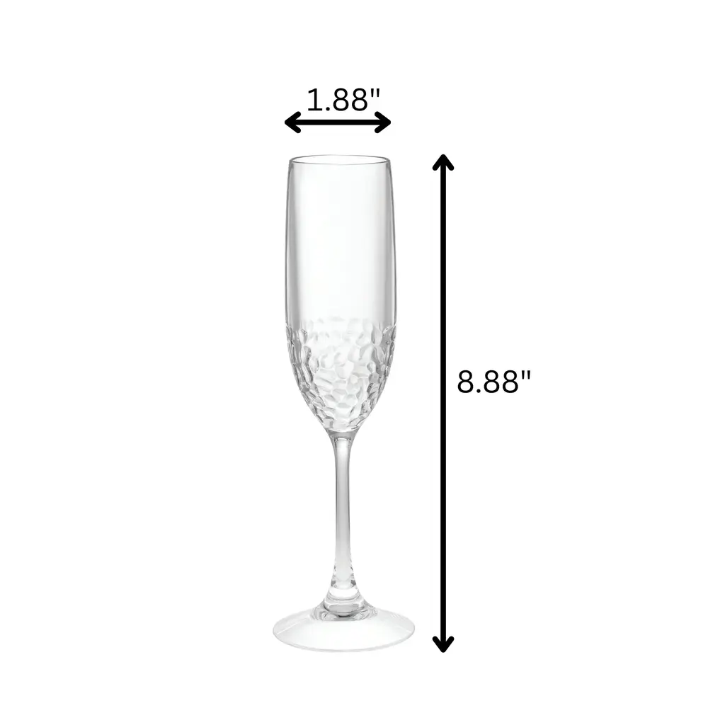 Serve your guests with BPA-free stunning plastic flutes which have style and durability. Get our unbreakable plastic champagne glasses and make a statement with these elegant and long-lasting party glasses.. This set includes four plastic champagne glasses, each holding a generous 6 ounces of your preferred champagne. These mimosa glasses are break resistant, meaning you don't have to worry about messy accidents or replacing broken glasses. Impress your guests and elevate your champagne tasting experience with these clear plastic champagne flutes.. Raise a toast with confidence using our wedding champagne flutes made with the highest quality, BPA-free plastic material that is not only incredibly sturdy, but also crystal clear in appearance. So go ahead, clink your glasses in harmony and celebrate with our top-quality, durable wedding glasses.. No need to worry about the tedious task of hand-washing after drinking hour. Simply toss them in your top rack dishwasher and they will come out sparkling like new every time. This convenience makes our dishwasher safe flutes perfect for both everyday use and entertaining.. Whether you're hosting a pool party, or just enjoying a warm summer evening on the patio, these shatterproof flutes are sure to become your go-to choice for drinking your favorite wine. So, get your flutes today and elevate your entertaining game to the next level!. Great for Parties. Inside and Outside Friendly
