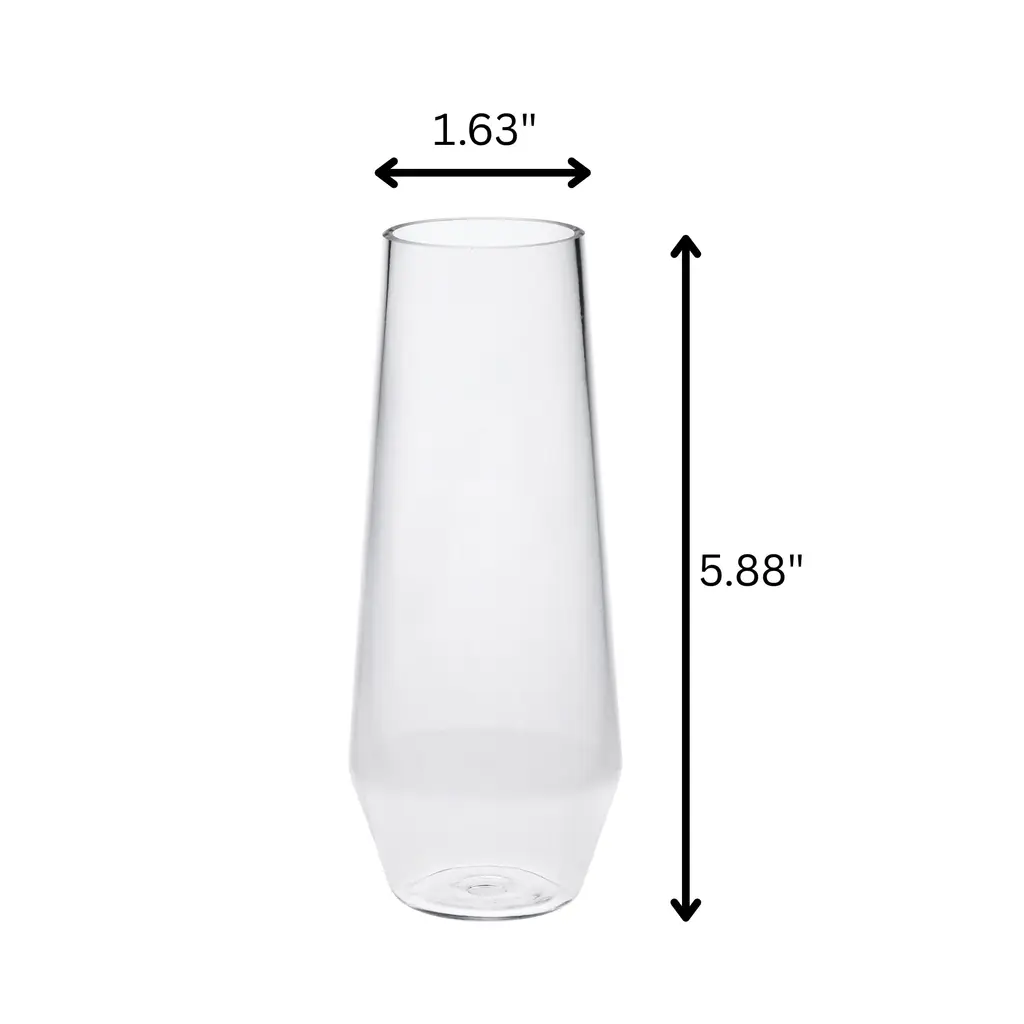 Serve your guests with BPA-free stunning plastic flutes which have style and durability. Get our unbreakable plastic champagne glasses and make a statement with these elegant and long-lasting party glasses.. This set includes four plastic champagne glasses, each holding a generous 9 ounces of your preferred champagne. These mimosa glasses are break resistant, meaning you don't have to worry about messy accidents or replacing broken glasses. Impress your guests and elevate your champagne tasting experience with these clear plastic champagne flutes.. Raise a toast with confidence using our wedding champagne flutes made with the highest quality, BPA-free plastic material that is not only incredibly sturdy, but also crystal clear in appearance. So go ahead, clink your glasses in harmony and celebrate with our top-quality, durable wedding glasses.. No need to worry about the tedious task of hand-washing after drinking hour. Simply toss them in your top rack dishwasher and they will come out sparkling like new every time. This convenience makes our dishwasher safe flutes perfect for both everyday use and entertaining.. Whether you're hosting a pool party, or just enjoying a warm summer evening on the patio, these shatterproof flutes are sure to become your go-to choice for drinking your favorite wine. So, get your flutes today and elevate your entertaining game to the next level!. Great for Parties. Inside and Outside Friendly