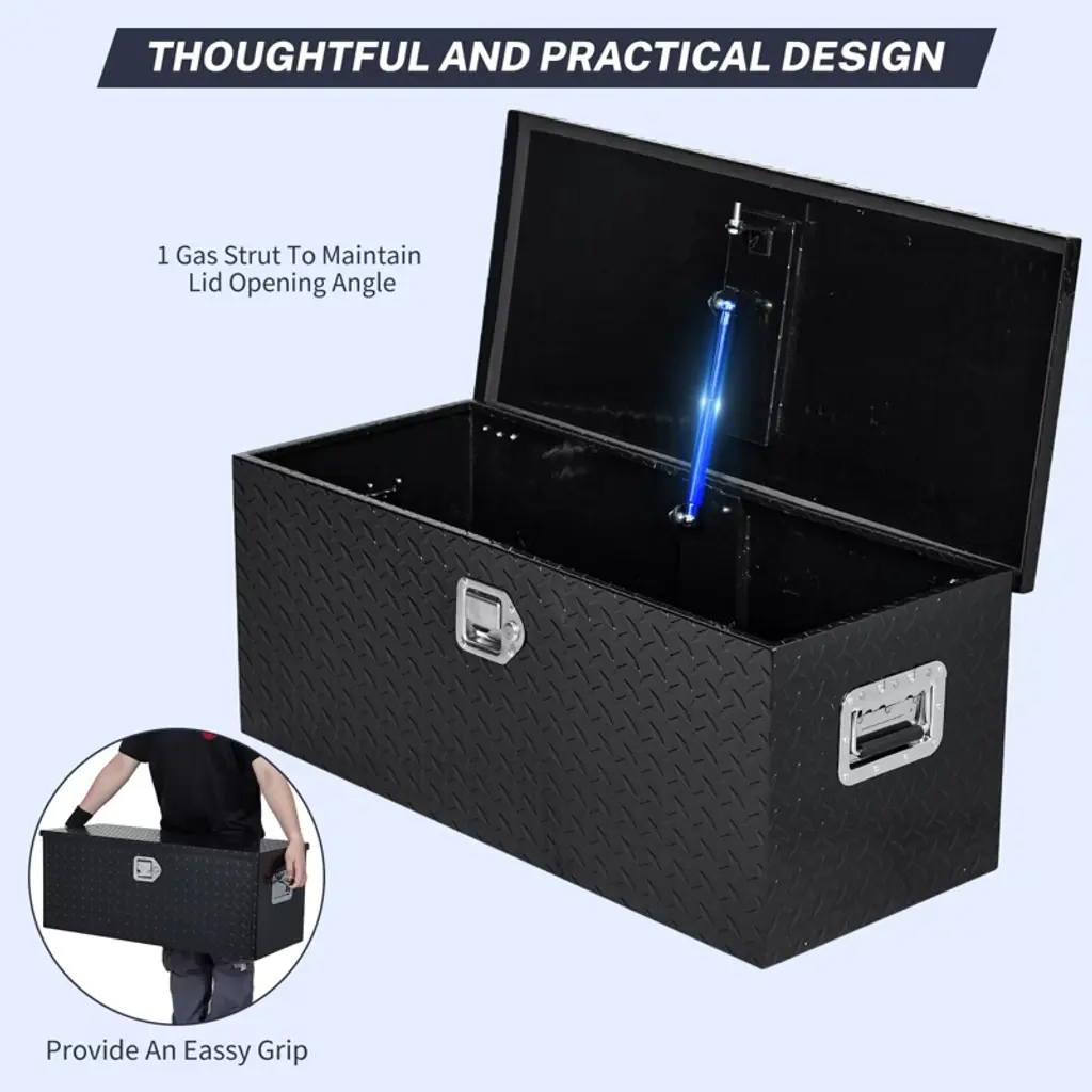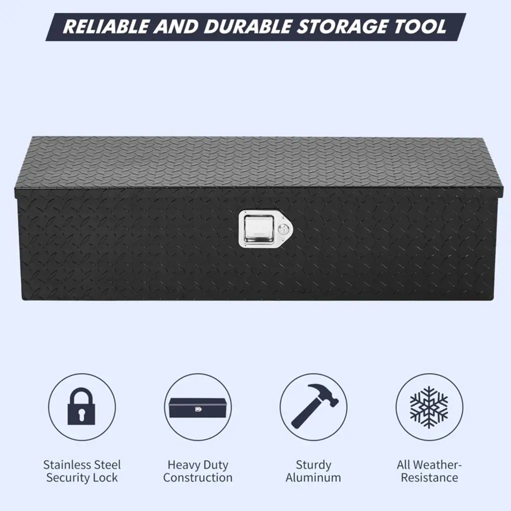 Truck Bed Tool Box, Heavy Duty Aluminum Diamond Plate ToolBox for Pick Up Truck RV Trailer, Trailer Toolbox Storage with Side Handle, Lock and Keys