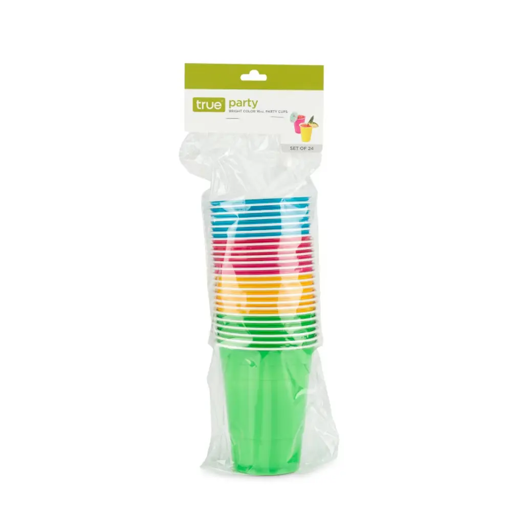 True Bright Party Cups, Disposable Cups, Drink Cups For Cocktails And Beer, 16 Ounce Capacity, Plastic, Multicolor, Set Of 24