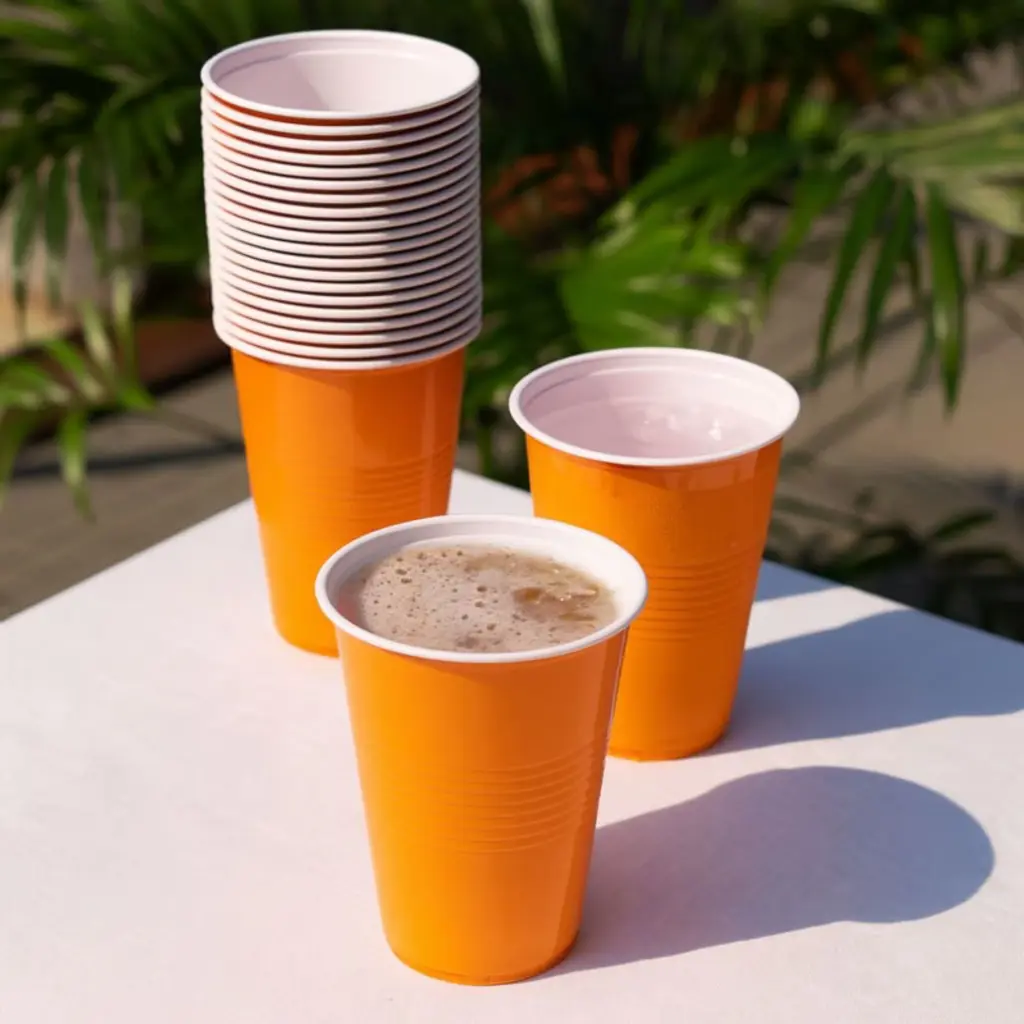 True Orange Party Cups, Disposable Cups, Drink Cups For Cocktails And Beer, 16 Ounce Capacity, Plastic, Orange, Set Of 50
