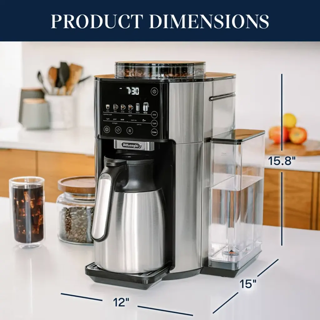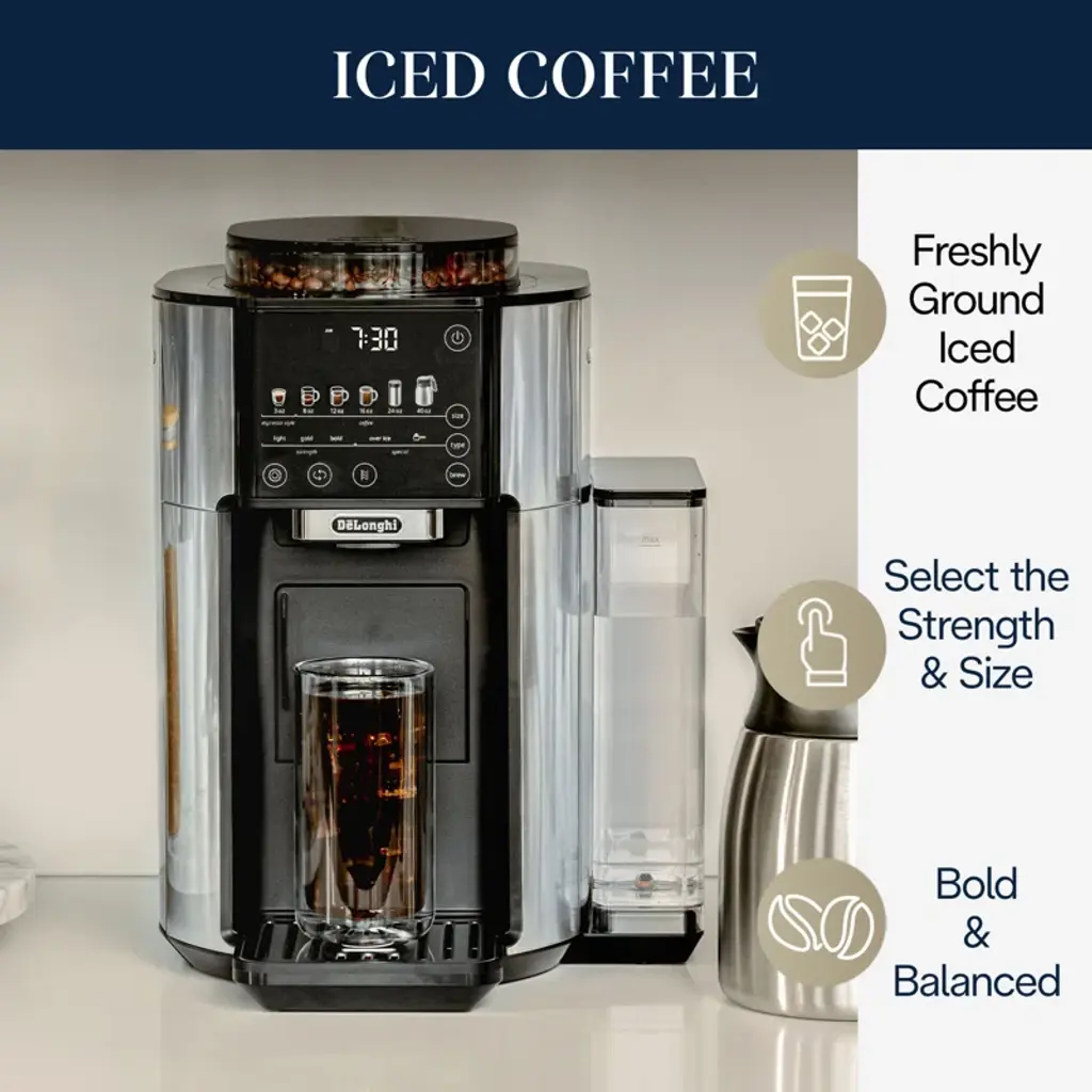 The DeLonghi TrueBrew is an innovative, automatic coffee machine that brews drip coffee from fresh, whole coffee beans, all at the touch of a button. TrueBrew is built to suit your coffee needs for consistent, freshly ground coffee every time. Simply pour in your favorite beans, select from 6 sizes, including a 40-oz carafe, and 5 styles, including iced, press the brew button, and watch TrueBrew take care of the rest. You can even pre-schedule your brew time with Auto-On. DeLonghi’s proprietary Bean Extract Technology automatically grinds, doses, and brews the beans to capture the coffee’s full flavor and aroma and then crafts the perfect cup for you. TrueBrew uses whole beans, not plastic pods or filters, creating zero waste. TrueBrew combines our most precise and adaptive brewing technology with true one-touch simplicity, bringing you the purest taste possible, exactly how you like it, all at the press of a button. Transform your at-home coffee experience with TrueBrew by DeLonghi.