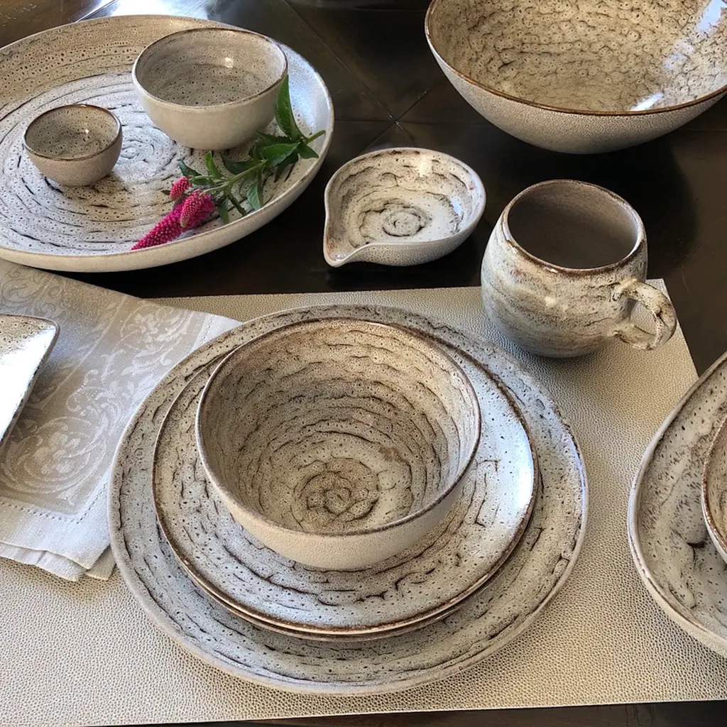 Earthy tones of brown, white and cream accentuate the matte-finish look of the Carmel Ceramica Truffle collection. Easy-care dinnerware and serveware pieces are created through a labor-intensive, multi-glaze process, resulting in a unique and beautiful feel.