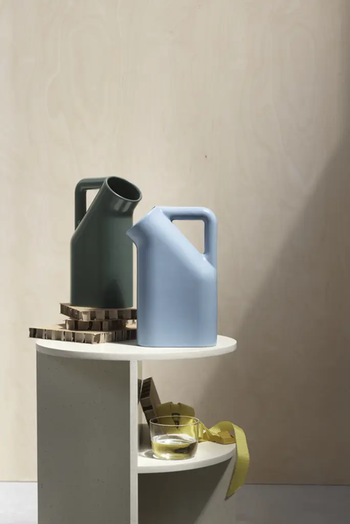 The Tub Jug is an industrial carafe with a contemporary expression, echoed through its angled handle and wide opening that bring both function and character to the design. The design is made in glazed ceramics.