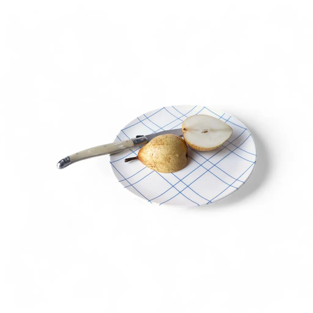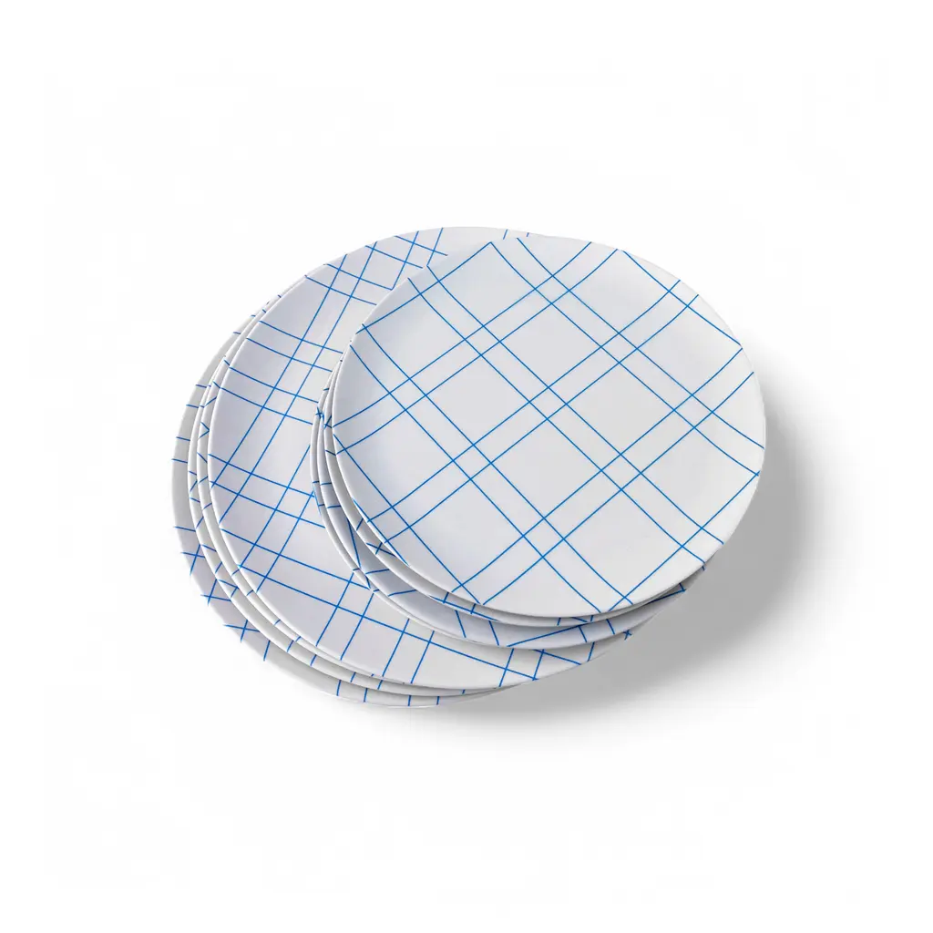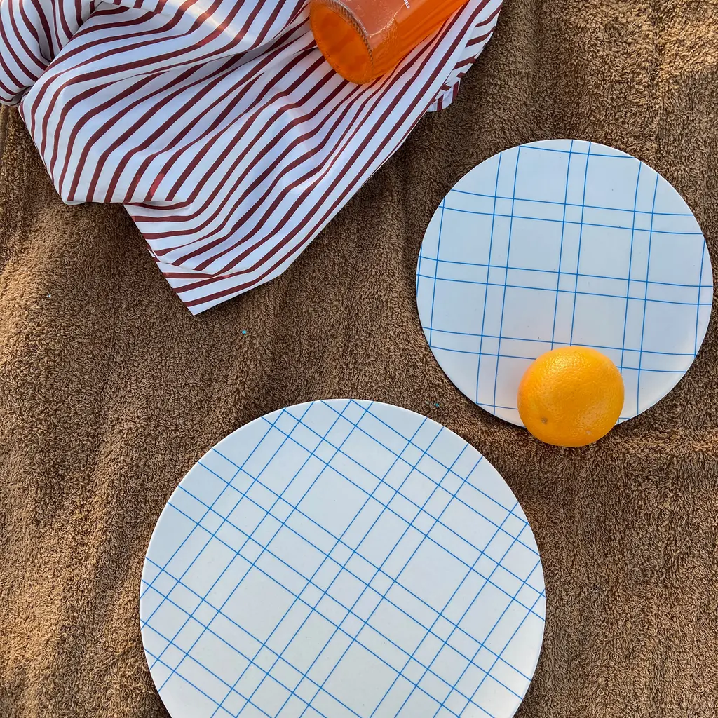 Fine blue lines arranged in a window pane grid motif put your food in the best light. Perfect for outdoor or indoor use, the Xenia Taler Tucker Side Plate offers a practical solution to serve a variety of dishes. The eco-friendly material that features bamboo wood, melamine and resin makes the plate lightweight and resistant to shattering, providing the ideal way to enjoy a picnic outdoors. Free of BPA, phthalates and PVC, this plate is non-toxic, food-safe and dishwasher-safe. Pair this design with the matching Tucker dinner plate from the same collection to create a fun set. Please keep in mind that the Xenia Taler collection of bamboo tableware is made with a resin binder and is NOT microwave-safe.