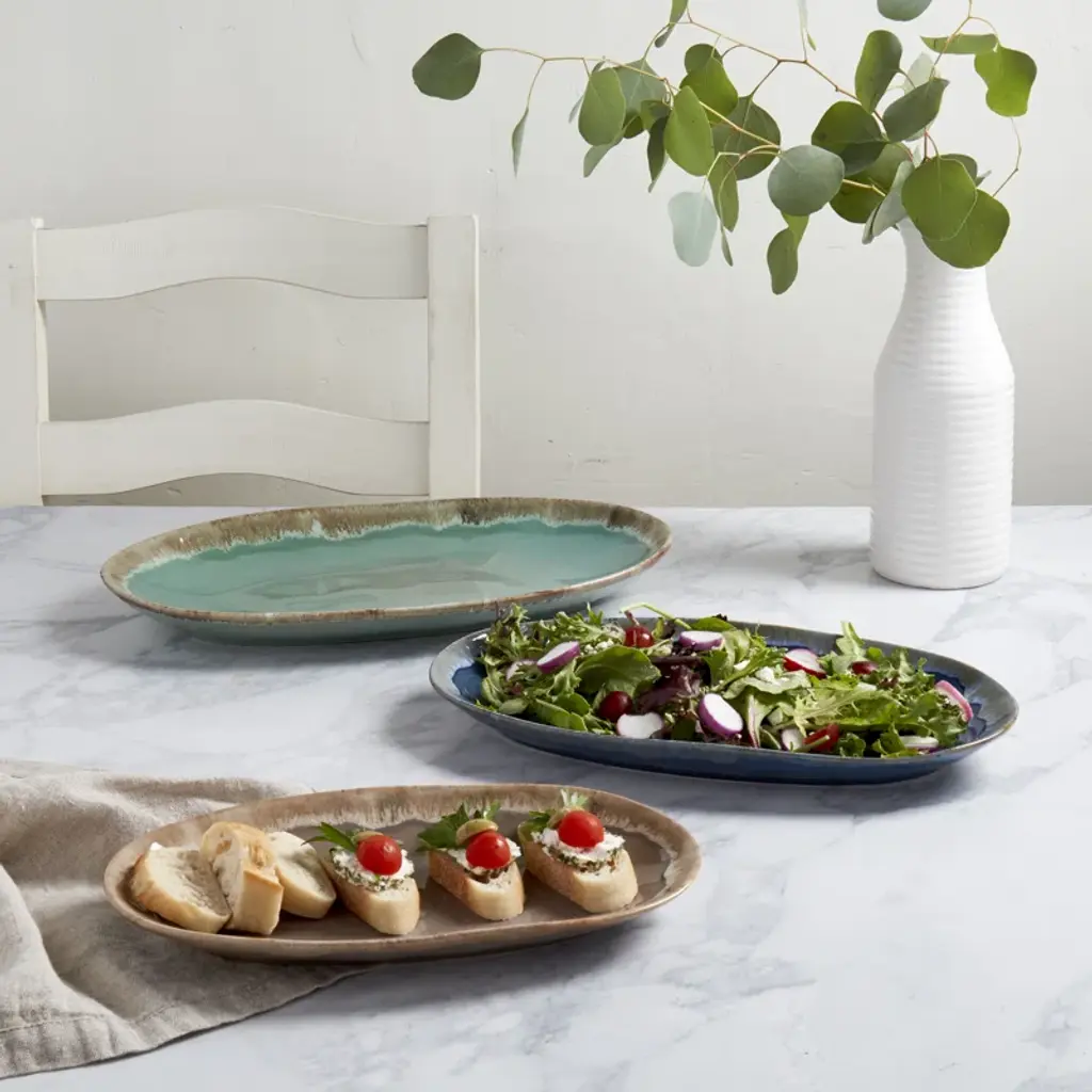 A serving essential. Crafted from durable stoneware, this oval platter adds modern simplicity to your table setting. Its versatile design is oven safe, allowing you to effortlessly transition from oven to table for impressive culinary presentations.