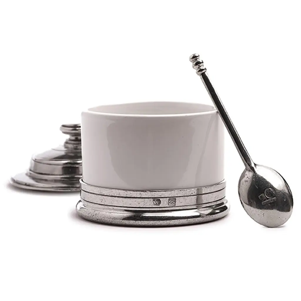 Tuscan French Country White Ceramic Covered Bowl With Spoon