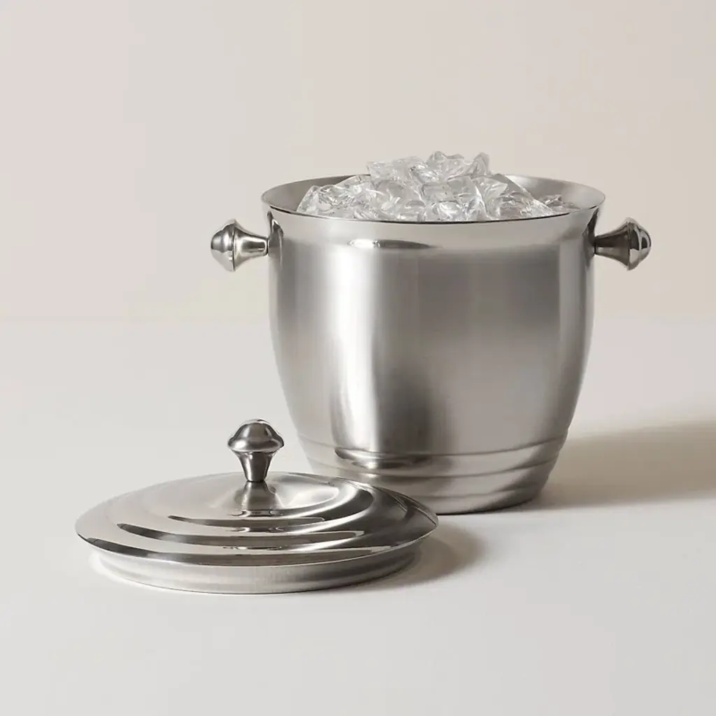 Contemporary and oh so cool! This handsome ice bucket will become the focal point of your home bar. Rounded handles, on each side of the bucket and atop the lid, are both decorative and functional. The ice bucket needs no liner because its double walls provide adequate insulation. Makes a great wedding or housewarming gift. The Tuscany Classics Stainless Ice Bucket is crafted of dishwasher-safe, tarnish-free stainless steel.