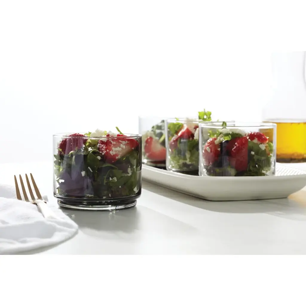 Timeless design meets reorganized function with these Tuscany Stackables. Featuring a flawless and easily stackable shape that declutters your kitchen, crafted in a glowing amber shade. Includes a set of four shot glasses.