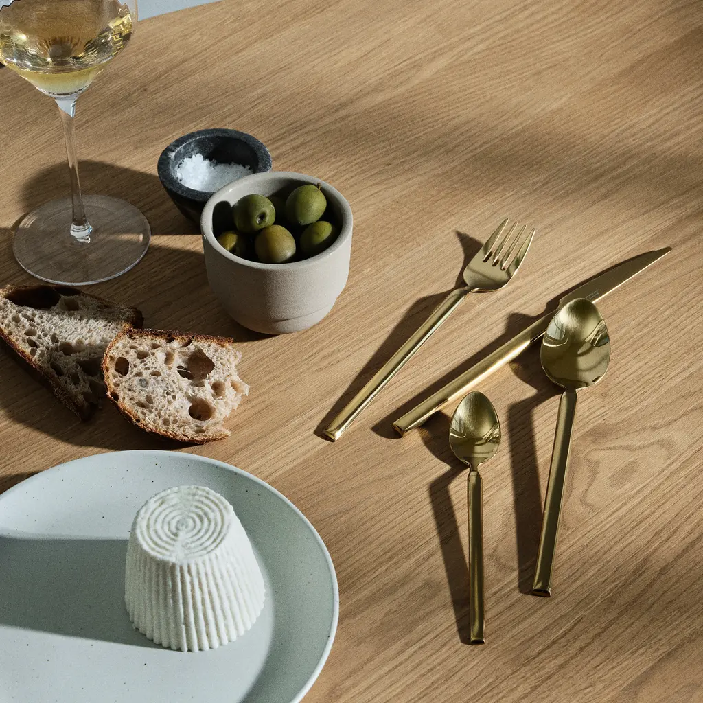 Impress your guests with the Broste Copenhagen Tvis Cutlery, Set of 16. Designed with a gold finish, this flatware set adds a touch of opulence to special meals, whether it’s an anniversary or a festive dinner. Elegant and modern, the cutlery features slim handles and beautiful curves. The titanium rose gold coating not only makes this stainless steel flatware look glam, but also creates a durable, hard-wearing surface. Perfect as a housewarming gift or a wedding present, the Broste Copenhagen Tvis Cutlery, Set of 16 comes with 4 knives, 4 forks, 4 tablespoons, and 4 teaspoons.
