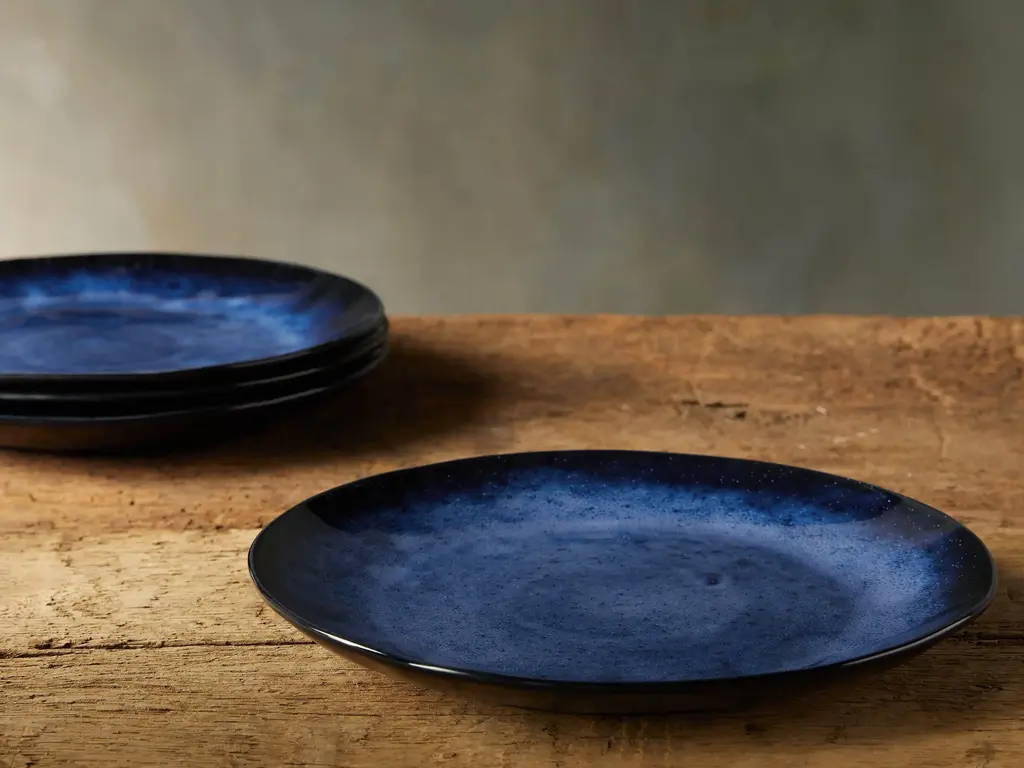 The perfect punch of color, these Indigo stoneware pieces are handcrafted in Portugal. Rich, blue, reactive glazes vary slightly from piece to piece, making each truly unique. Stoneware. Dishwasher safe. Microwave safe.