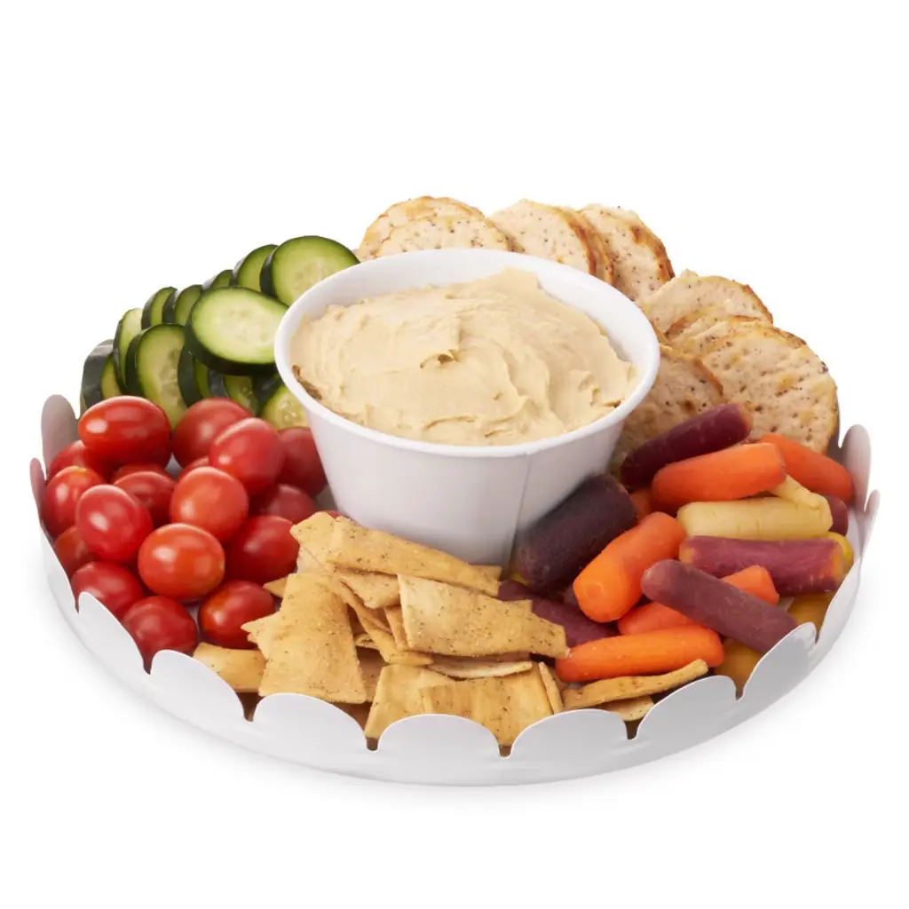 This cheerful cake stand is the perfect way to serve up any cake with some pizazz. Use for cakes, cupcakes, and any dessert that deserves top-notch presentation. Or flip it over and use for chips and dip or other appetizers. White stainless steel 11-inch diameter Durable construction No assembly required