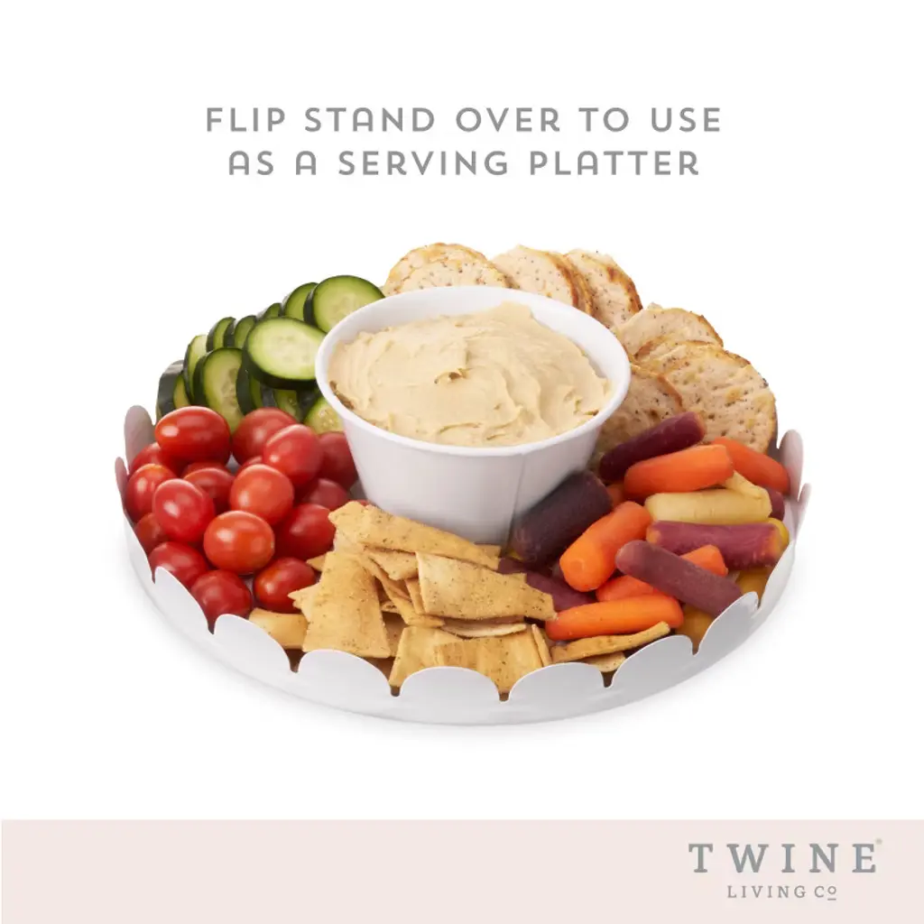 Twine White Stainless Steel Cake Stand, Set Of 1, Cupcake Stand, Home Decor, Food Service, Dessert Accessory, 11-inch Diameter, White