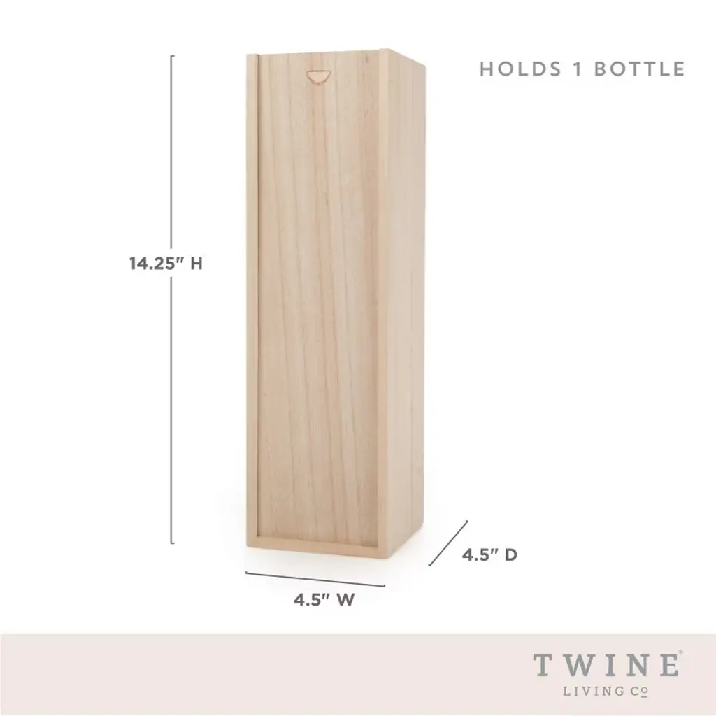 Twine Wooden Box With Lid For Wine Storage, Great For Wine Accessories, Wine Gift Box For Any Occasion, 1 Bottle, Exposed Wood Grain