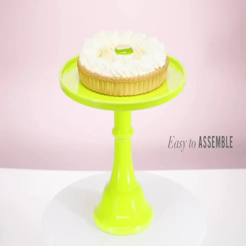 This cheerful cake stand is the perfect way to serve up any cake with some pizazz. Use for cakes, cupcakes, and any dessert that deserves top-notch presentation. Fuschia melamine Durable construction Easy assembly