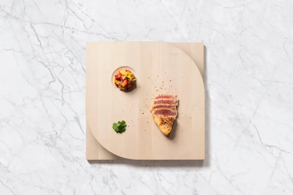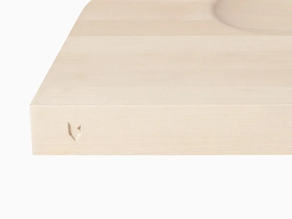 Beauty meets function. This two-sided cutting board is made with European maple butcher block and carved at the corners with an ergonomic shape for easy lifting and handling. It’s a dinner party staple accommodating your laborious food preparation on the broad, flat side of the board while your appetizer compositions can take shape on the distinctly scalloped side.Designed in Brooklyn by Italian-born architect Ale Preda for Miduny, this artisanal product is made in Italy by master craftsmen. This board design comes in two versions. Quadrato, the square version featured in this listing, measures 15.75" x 15.75" x 1.6" thick. It feels large, heavy and professional. Food safe finish. Maple from an FSC (Forest Stewardship Council) certified mill. You’ll be confident to show off those German knife skills or whittle discretely until you’ve perfected the ratio of aioli to rye and veggie sliders. Whether you’re a seasoned foodie or the new kid on the food block (get it?), always remember the timeless art of teasing before pleasing. As the ultimate chef-side wingman, the Two-Face Cutting Board has it covered.