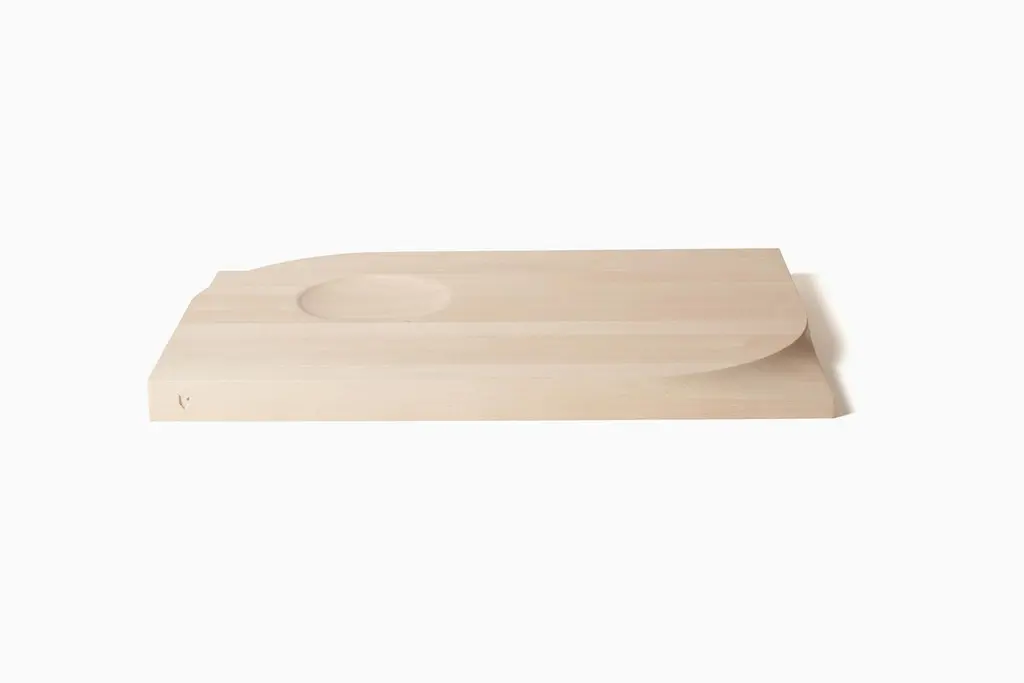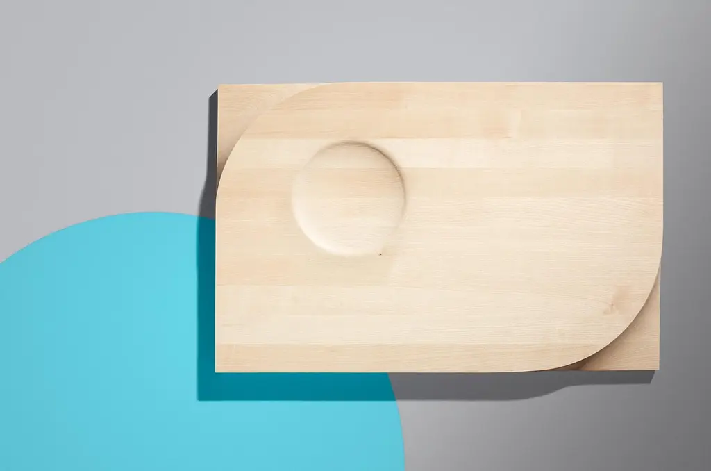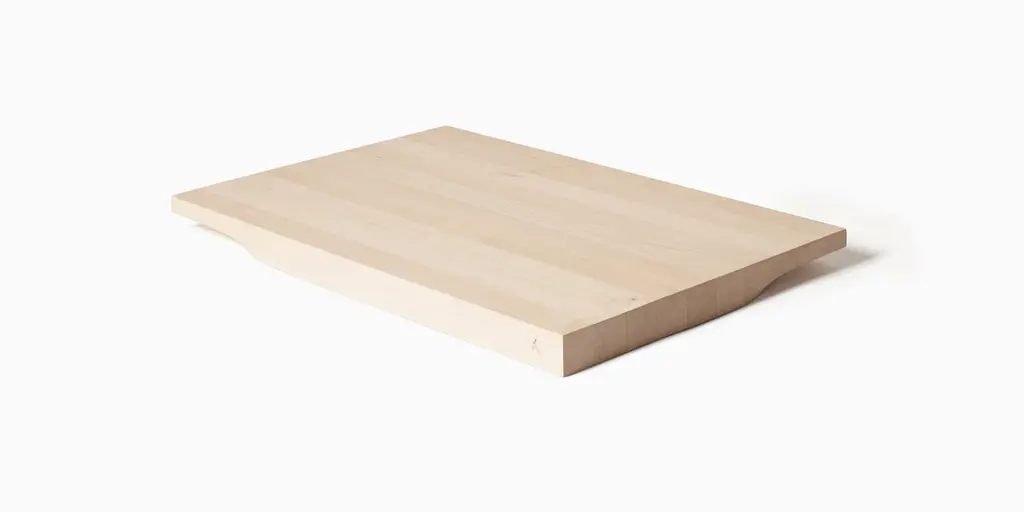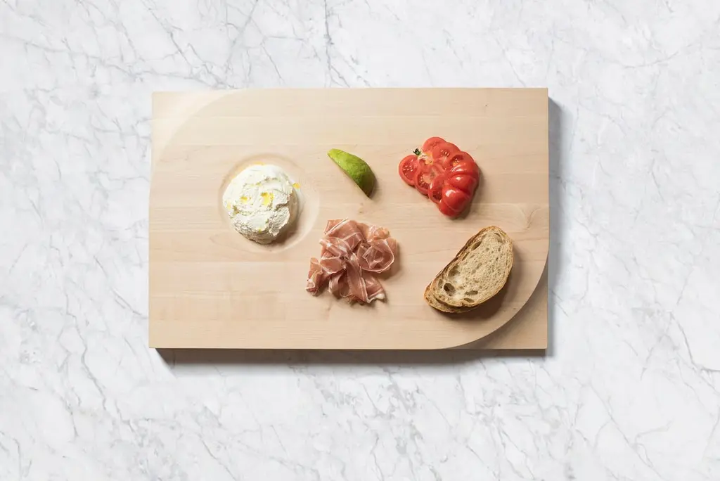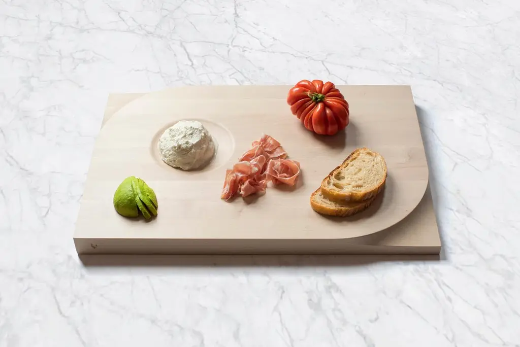 Beauty meets function. This two-sided cutting board is made with European maple butcher block and carved at the corners with an ergonomic shape for easy handling. It’s a dinner party staple accommodating your laborious food preparation on the broad, flat side of the board while your appetizer compositions can take shape on the distinctly scalloped side.Designed in Brooklyn by Italian-born architect Ale Preda for Miduny, this artisanal product is made in Italy by master craftsmen. This board design comes in two versions. Rettangolo, the rectangular version featured in this listing, measures 23.5" x 15.75" x 1.6" thick. It feels large, heavy, and professional. Food safe finish. Maple from an FSC (Forest Stewardship Council) certified mill. You’ll be confident to show off those German knife skills or whittle discretely until you’ve perfected the ratio of aioli to rye and veggie sliders. Whether you’re a seasoned foodie or the new kid on the food block (get it?), always remember the timeless art of teasing before pleasing. As the ultimate chef-side wingman, the two-face cutting board has it covered.