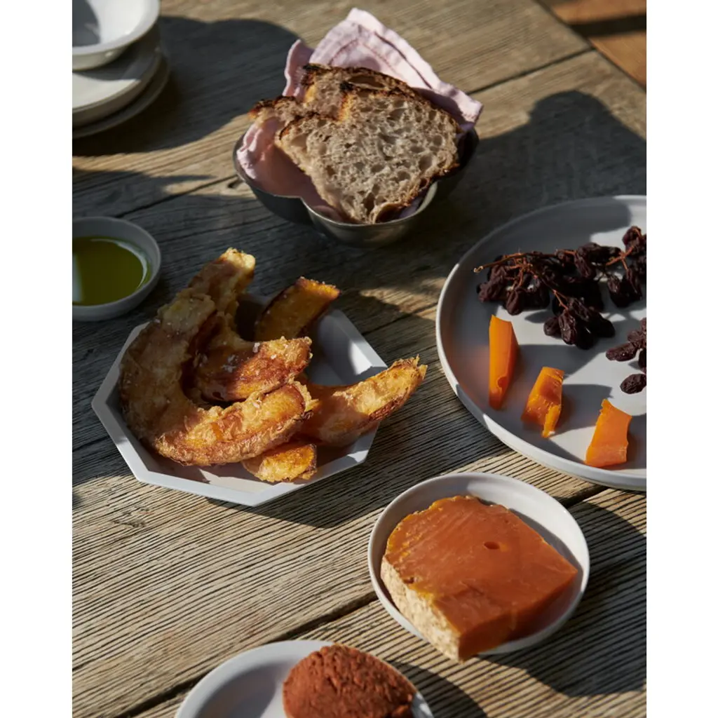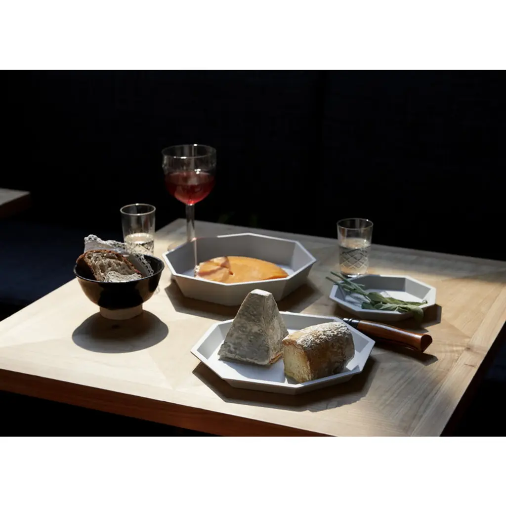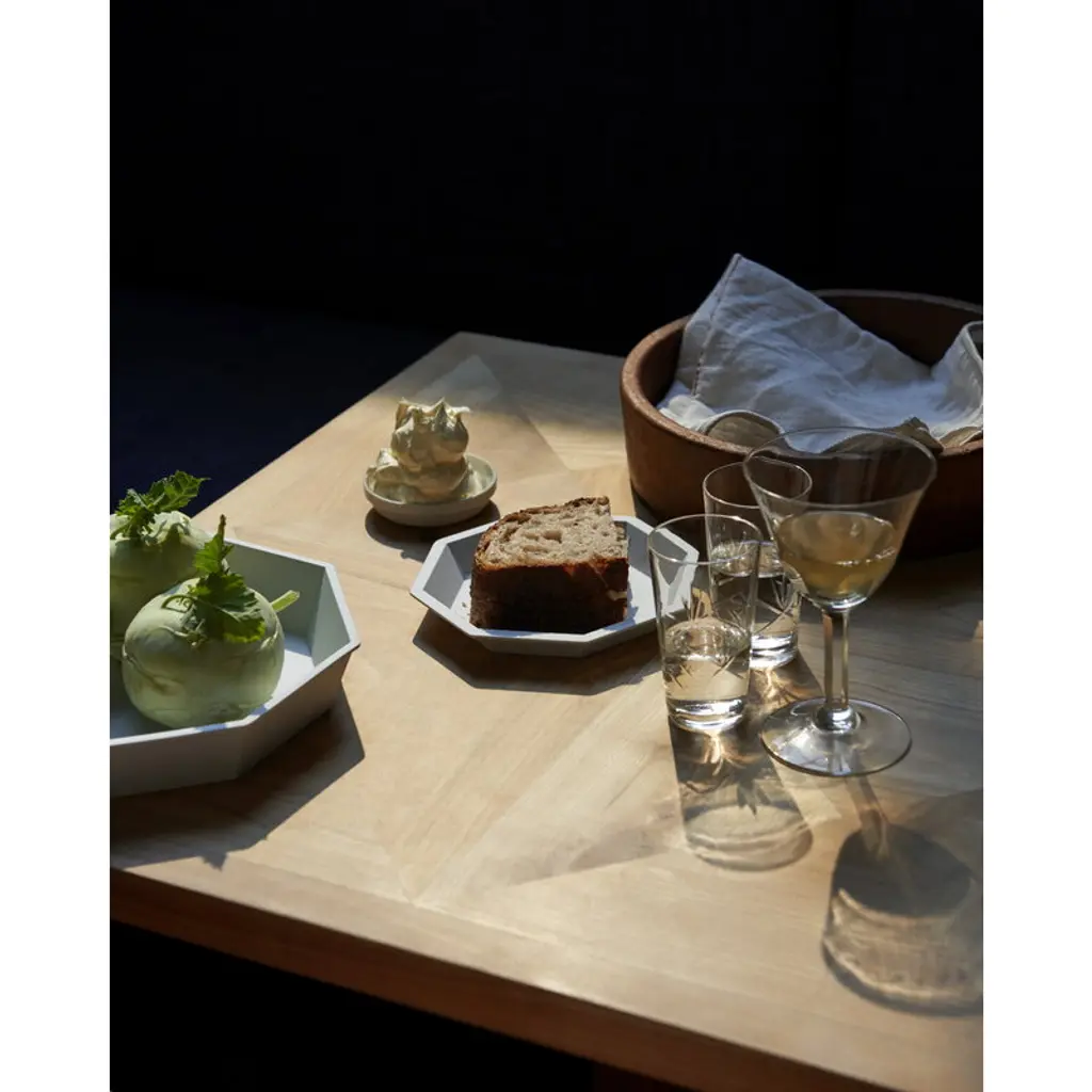 TY Anise 150 plate by 1616 / arita japan transforms a table setting into a poetical work of art. Designed by Teruhiro Yanagihara, the plate catches the eye with its unusual and playful octagonal shape. The versatile small plate finds its place in both day-to-day and festive table settings: it serves not only as a plate for tasty appetizers or delicious desserts but also as a tray, serving dish or even as the lid of a bowl. Outside the kitchen, you can use the TY Anise plate as a storage container for your favorite jewelry and other tiny treasures in the home. The TY Anise porcelain collection is made of clay with a traditional Japanese technique used in the town of Arita for decades. The method and the material make the tableware extremely durable: the unglazed plate is resistant to heat and stains. As the clay used may contain traces of iron, the gray shade of the plates may vary slightly, making each plate totally unique.