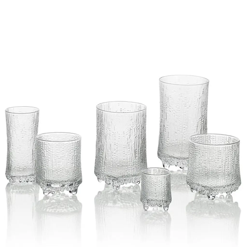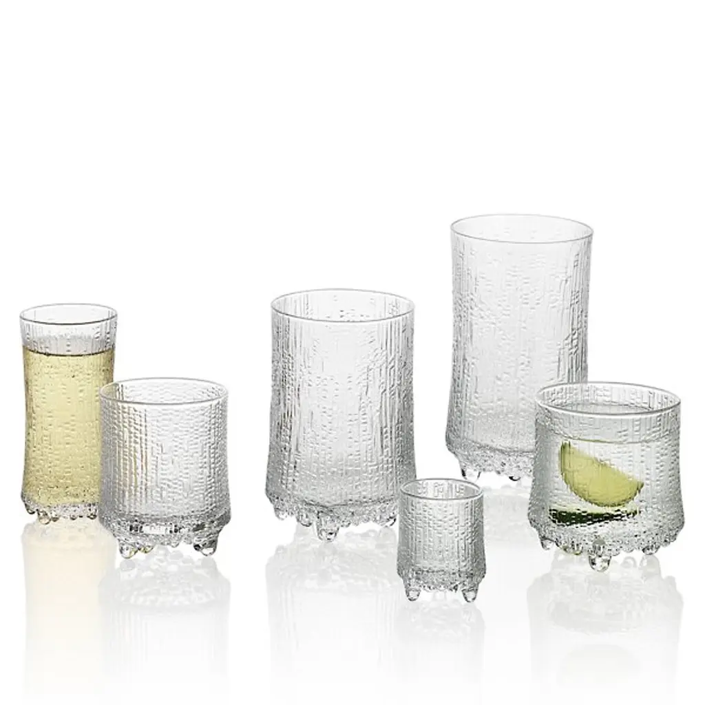 Enjoy your cocktails on the rocks in a glass that looks like it is the rocks. The Iittala Ultima Thule Set of 2 Double Old Fashioned Glasses was created by Tapio Wirkkala to resemble melting ice. The amazingly realistic effect is the result of molten glass burning through the surface of its wooden mold.