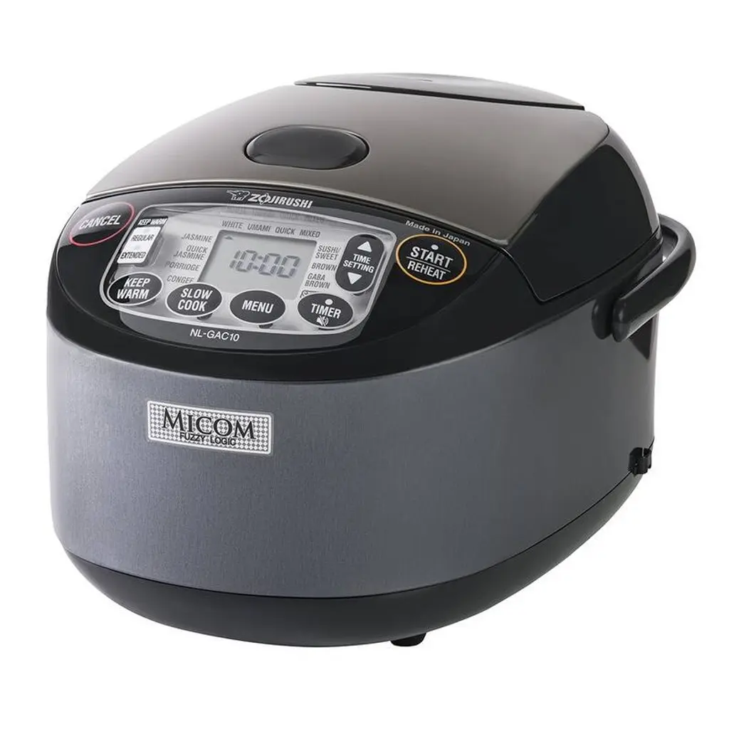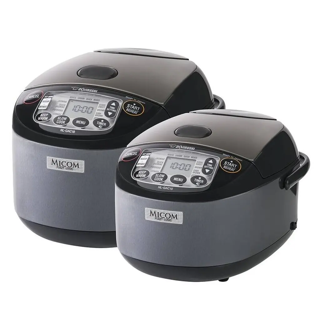 Cook perfect rice every time with the Umami Micom Rice Cooker & Warmer by Zojirushi. Available in 5.5 and 10 cup sizes, this rice cooker is made in Japan and features advanced micro computerized Fuzzy logic technology. With menu settings that include white, umami, mixed, sushi/sweet, Jasmine, porridge, congee, brown, GABA brown, quick white, quick Jasmine, steam, and slow cook, you can cook a variety of dishes with ease. The exclusive UMAMI setting extends soaking and steaming for enhanced flavor, while healthy cooking options like brown rice, GABA brown rice, and steaming ensure that you can cook nutritious meals. The black thick easy-to-clean nonstick coated inner cooking pan (1.5 mm) makes clean-up a breeze.Features:
