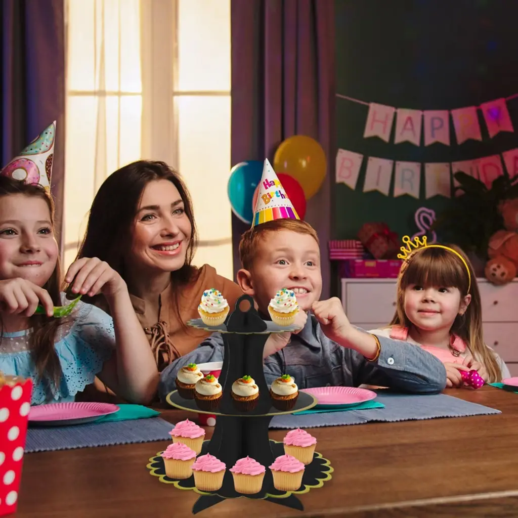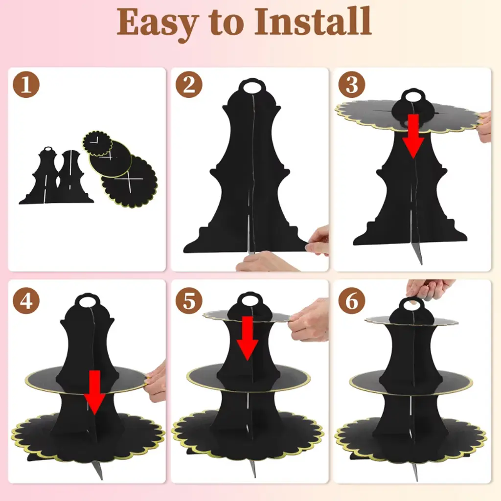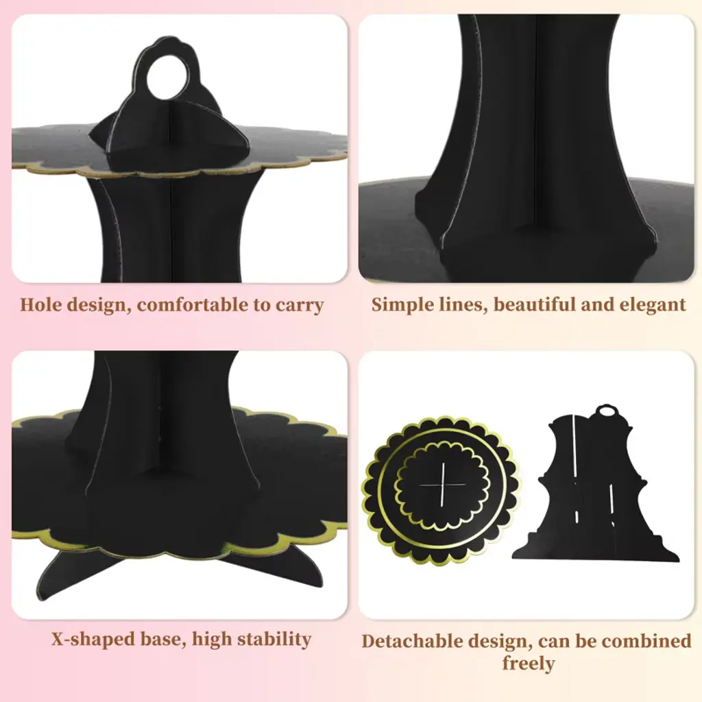 Unique Bargains 3-tier Cardboard Cupcake Stand Tower Black 2 Pcs